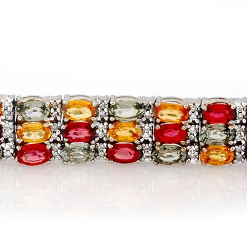 REF-407W8F -11731 ---- 32.26 CTW Multi-Sapphire & Diamond Bracelet 14K White Gold ---- Luxury Designer Brand Bracelet Appraised at $26,900 Certificate Number US11731 14k White gold, Bracelet Size is 7 Inches, Bracelet measuring approx. 7" x 3/8", weighing in total approx. 40 grams. Made in the USA and is stamped 14k, Main stone 30 carat total weight containing 81 pieces of Translucent Colors color with AAA quality Oval shape cut Sapphire , Stone #2 2.26 carat total weight containing 162 pieces of H-I color with VS/SI quality Round shape cut Diamond
