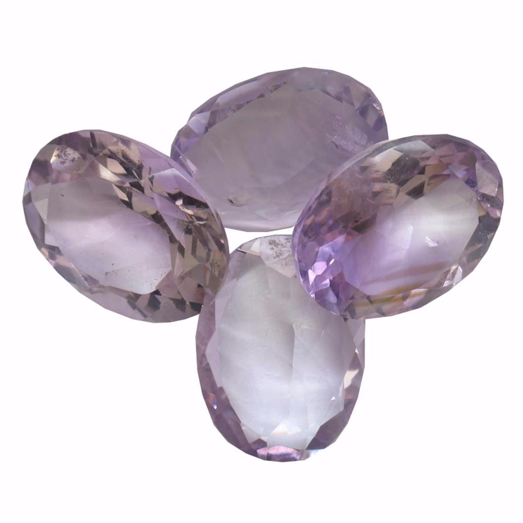Four oval mixed cut natural amethysts exact total weight 32.26ct., clarity is slightly included, type II, medium dark, very slightly grayish, purple color, (GIA P 6/3), cut is good. Westfield Appraised at $1,120.00.