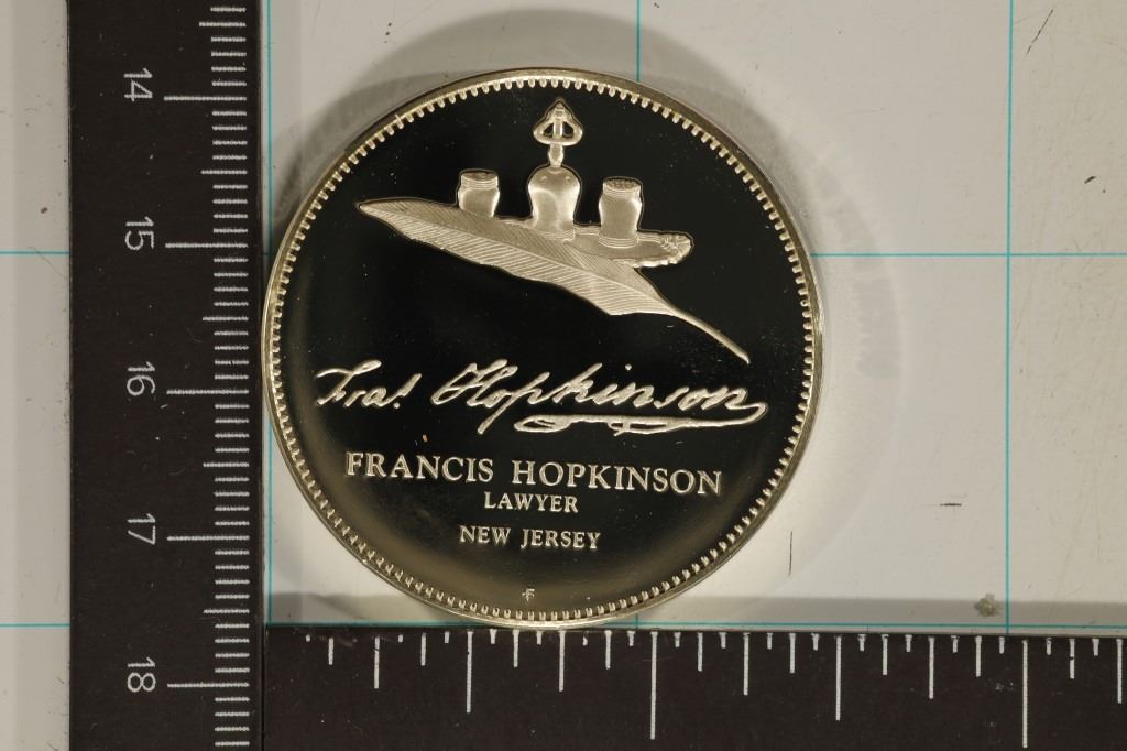BICENTENNIAL COUNCIL OF THE FIRST ORIGINAL 13 STATES PROOF ROUND, IN HARD PLASTIC CAPSULE. "FRANCIS HOPKINSON", EDGE MARKED