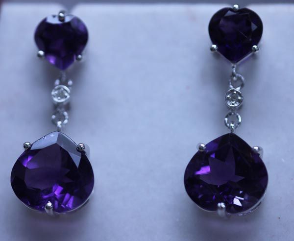 32.50 CTW AMETHYST AND DIAMOND EARRINGS .925 STERLING S **|**|** 32.50 CTW AMETHYST AND DIAMOND DANGLING EARRINGS .925 STERLING SILVER; CENTERSTONE 11.5 CTW; DIAMOND 0.03 CTW ; MSRP: $600