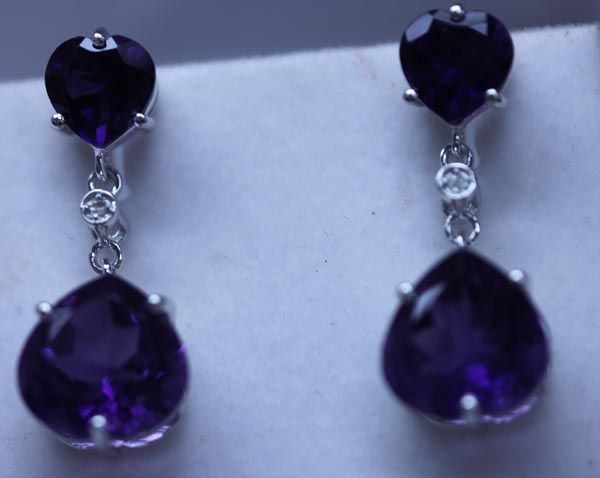 32.60 CTW AMETHYST AND DIAMOND EARRINGS .925 STERLING S **|**|** 32.60 CTW AMETHYST AND DIAMOND DANGLING EARRINGS .925 STERLING SILVER; CENTERSTONE 11.5 CTW; DIAMOND 0.03 CTW ; MSRP: $600