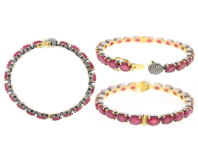 RUBY AND DIAMOND BANGLE/Diamond Count 1:/Diamond Count 1 TCW:0.35/Diamond Color & Clarity:J-L/I1-I2/Diamond Count 2:/Diamond Count 2 TCW:/Diamond Color & Clarity:/Diamond Count 3:/Diamond Count 3 TCW:/Gemstone Count 1:20/Gemstone Count 1 TCW:32.28/Dimension:/Metal Type:14k Gold Yellow Gold /Weight Gram:5.13over 0.925 SilverSterling Silver /Weight Gram:12.02/Gross Weight:23.68