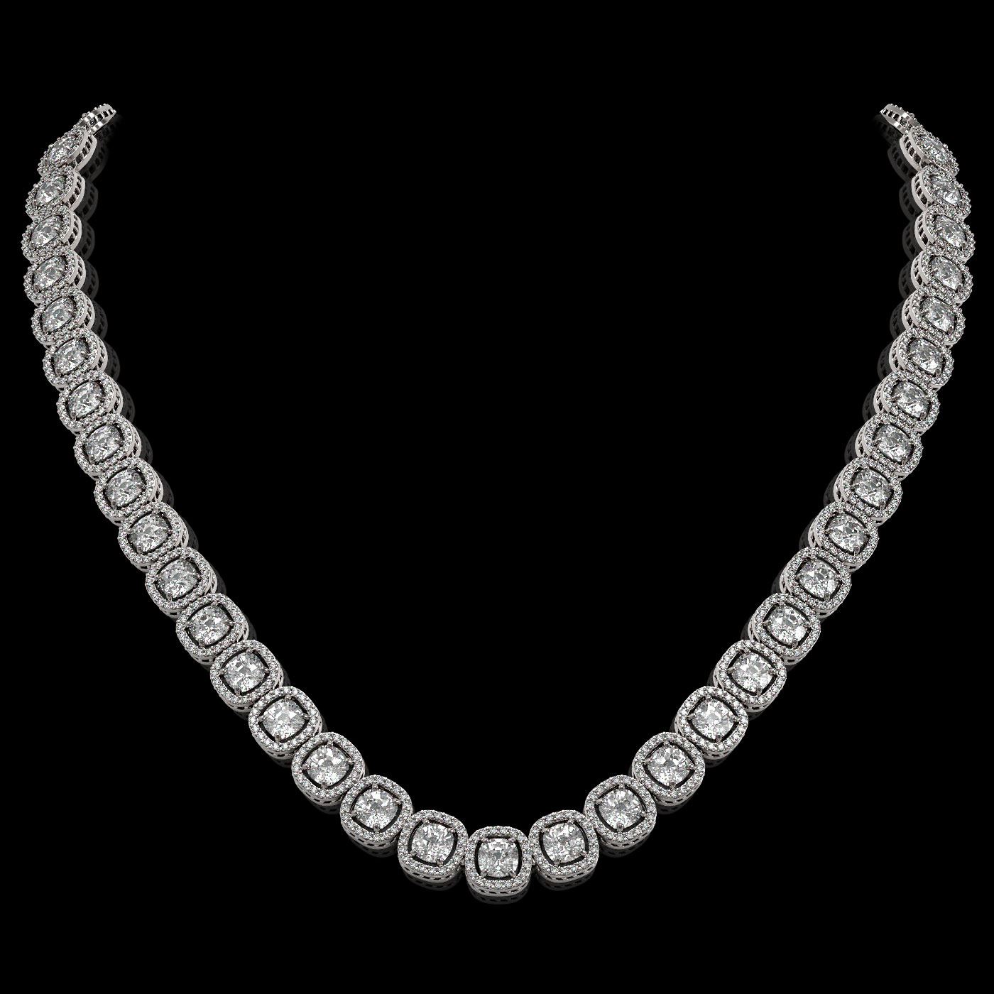 REF-4475W8H - SKU: 42623 ---- 32.64 ctw Cushion Cut Diamond Micro Pave Necklace 18K White Gold