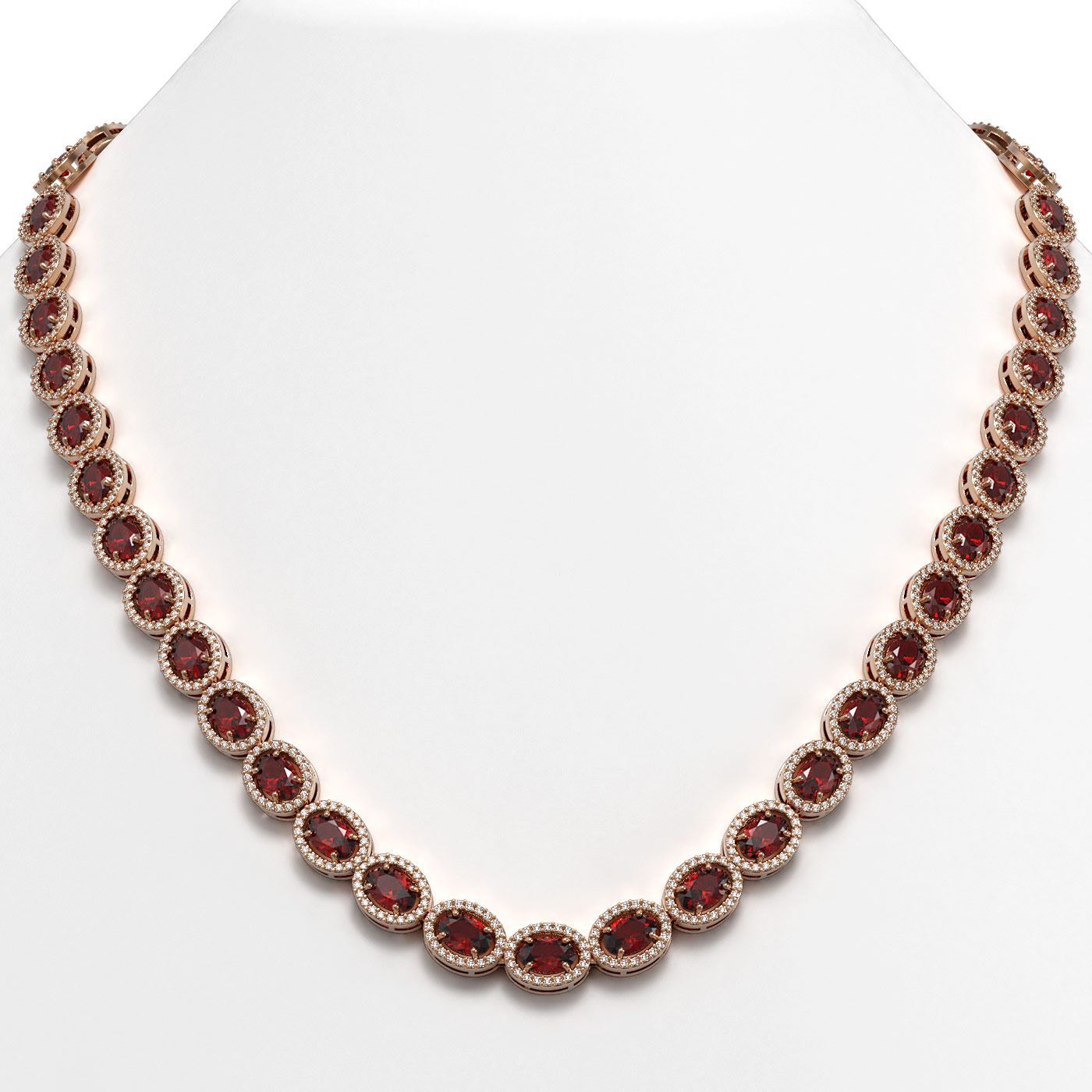 REF-600A2N - SKU: 40446 ---- 32.82 ctw Garnet & Diamond Micro Pave Halo Necklace 10k Rose Gold