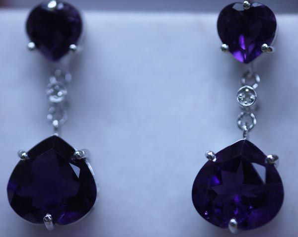 32.85 CTW AMETHYST AND DIAMOND EARRINGS .925 STERLING S **|**|** 32.85 CTW AMETHYST AND DIAMOND DANGLING EARRINGS .925 STERLING SILVER; CENTERSTONE 11.5 CTW; DIAMOND 0.03 CTW ; MSRP: $600
