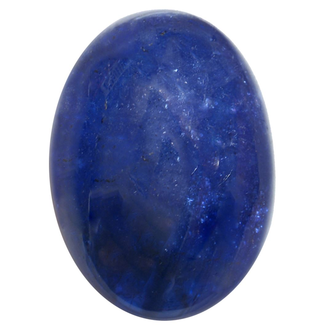 One oval cabochon cut natural tanzanite, measuring 22.00 x 16.00 x 10.40mm, exact weight 32.80ct., clarity is heavily included, type I, dark, very slightly grayish, blue color, (GIA B 7/3), cut is good. Transmitting light somewhat diffusely, transparent to translucent. Naturally occurring internal & external characteristics are present. Indications of heat treatment. Westfield Appraised at $3,150.00.