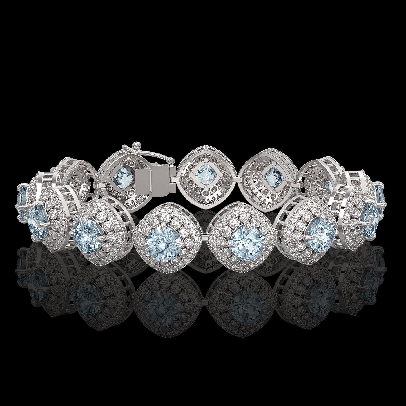 REF-982H2R - SKU: 44156 ---- 32.95 ctw Aquamarine & Diamond Victorian Bracelet 14K White Gold