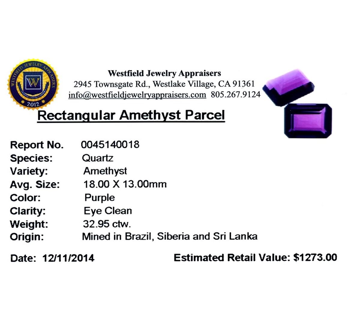32.95ctw. Rectangular Amethyst Parcel Westfield Appraised at $1,273.00.