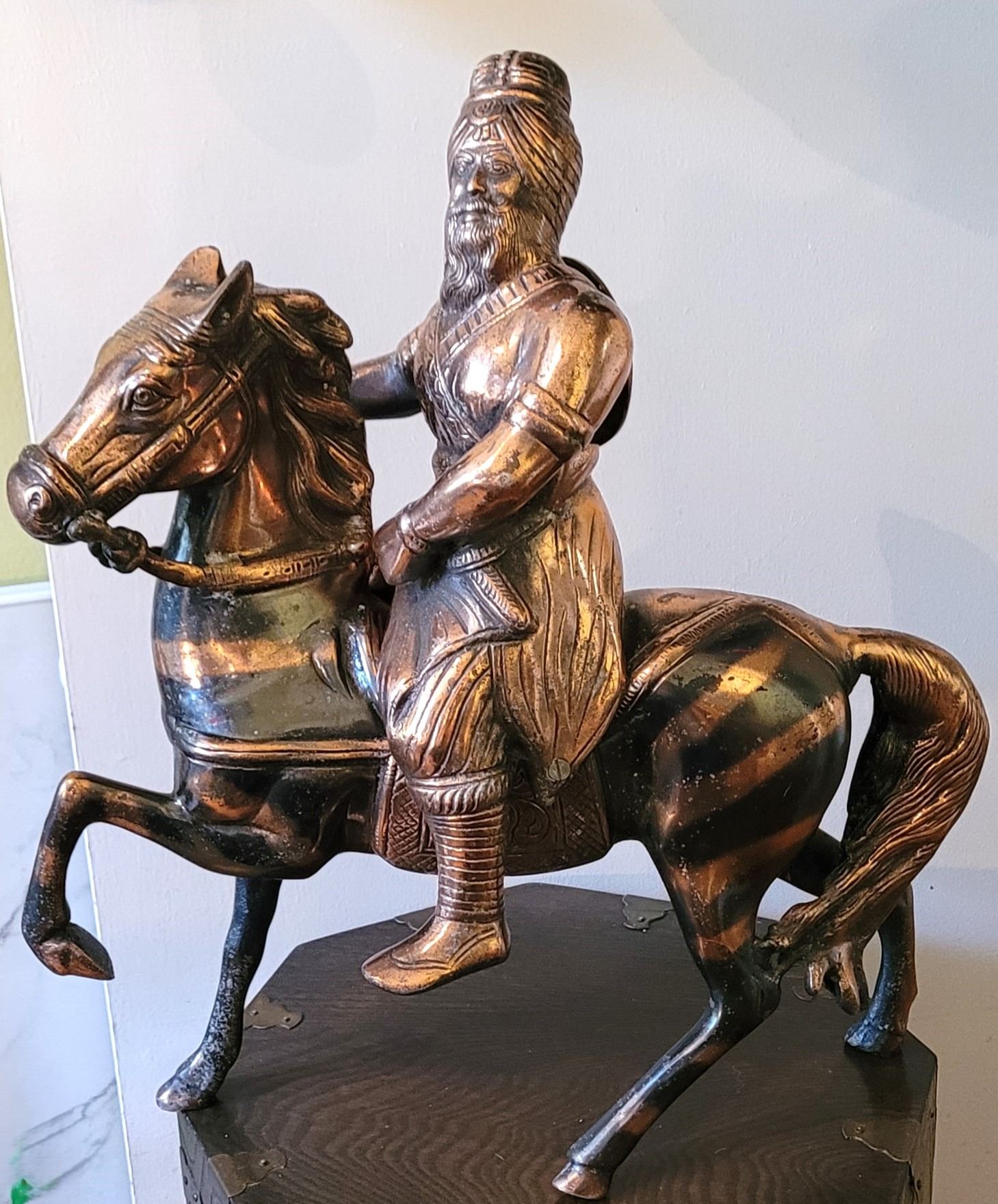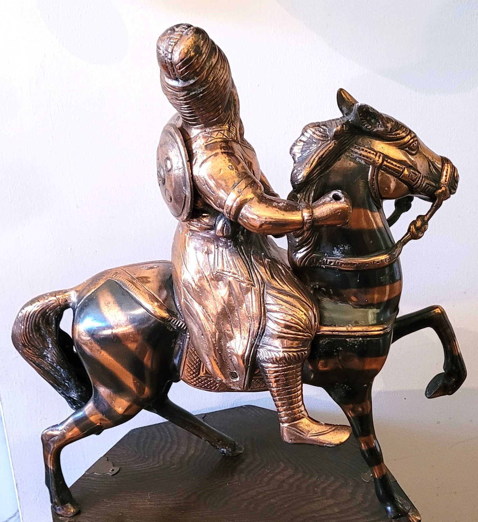 32) BRONZE ANCIENT PERSIAN WARRIOR ON HIS HORSE,