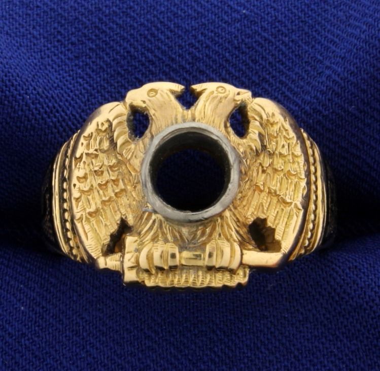 In 14k yellow gold. Perfect ring to put in your own diamond or gemstone. Or we can put our own diamond in at your request (contact us for pricing). Size 10 1/4. 14.8g.