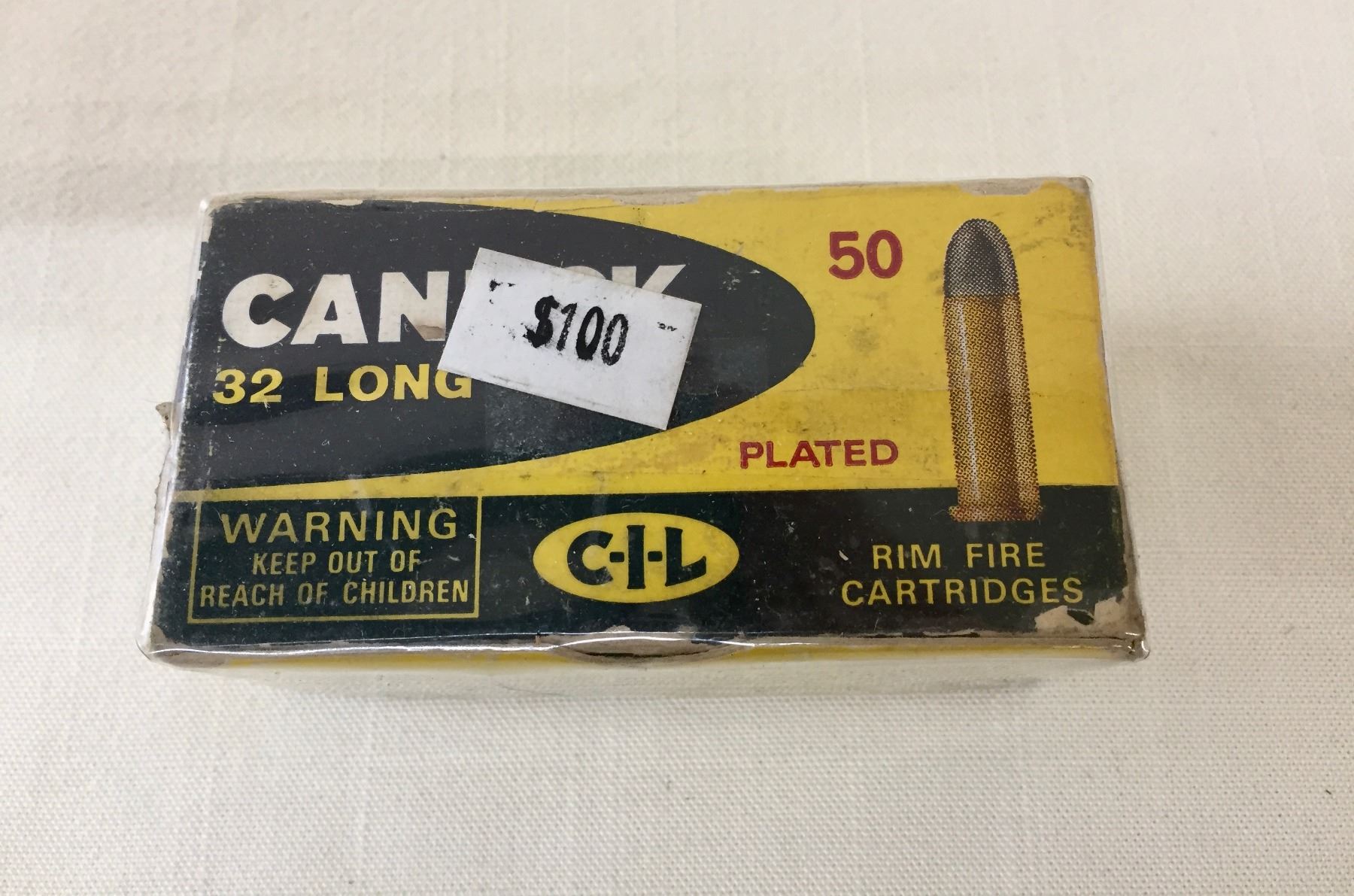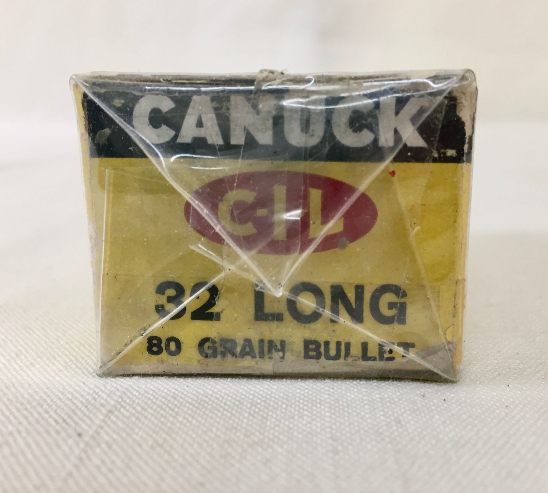 Description: Included for sale in this lot is a collectible box of Canuck .32 long rim fire cartridges in its original packaging.