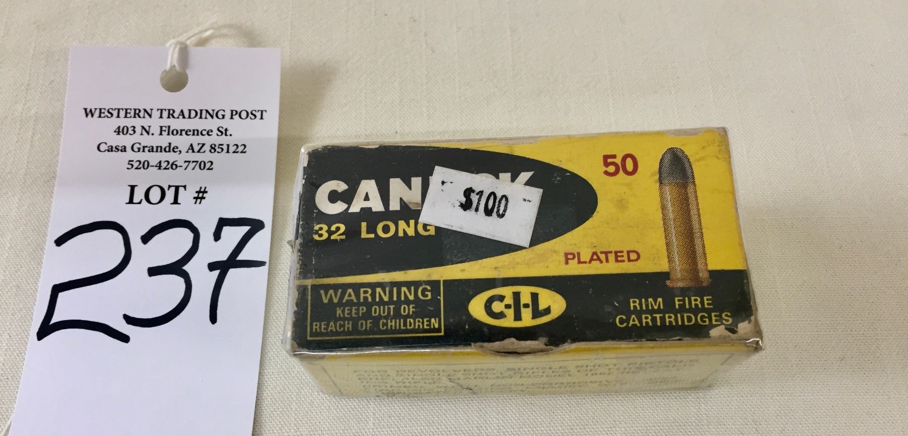 Firearms: Any person(s) bidding on firearms in our auction are required to be at least 18 years of age for long guns and 21 years of age for hand guns. Western Trading Post llc. is a licensed and practicing Federal Firearms Licensed (FFL) dealer. Any Bidders who desire to bid on and purchase any firearms in our auctions cannot have been convicted of a felony, have any restraining orders, or have any reason that they would not pass a NICS FFL Background Check. Western Trading Post llc. reserves the right to run a NICS FFL Background check on any purchaser of firearms. If the Bidder is a resident of the state of Arizona, they may pick up in person once cleared by the NICS FFL Background check. Otherwise, firearms will be shipped to a Federal Firearm Licensed Dealer of your choosing nearest your residence. The Buyer agrees to pay for any and all shipping/handling/fees/etc. necessary for the shipping and transfer of any firearms. Antique firearms and black powder replica which are exempted from NICS FFL background checks can be transferred directly to the purchaser (where legal to do so).
