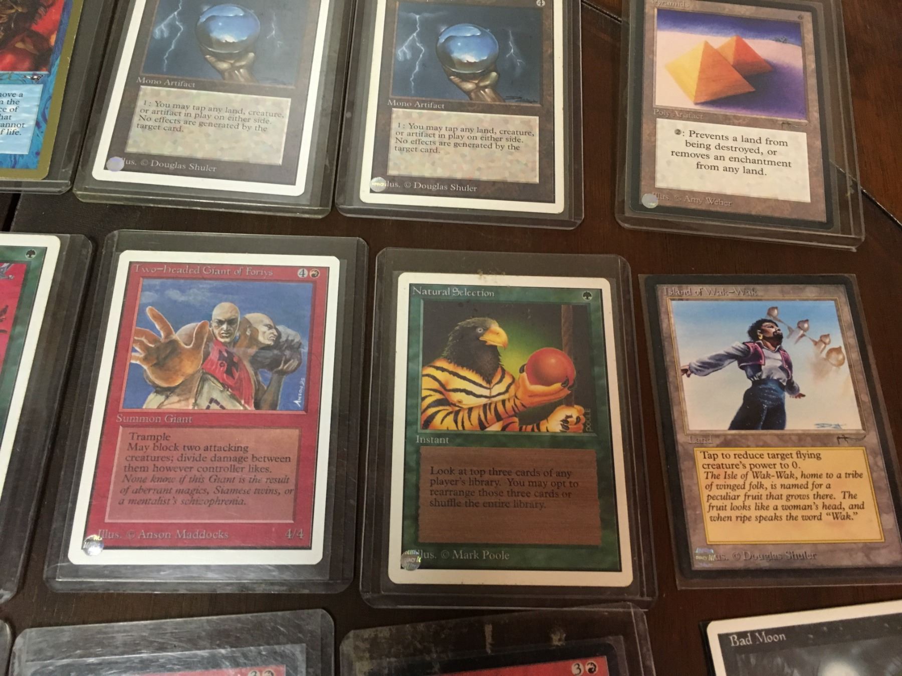 32 Magic The Gathering Cards, including Natural Selection, Island of Wak-Wak, 2 Acid Rain, 2 Khabal Ghoul cards, and other rare and collectible MTG cards! This is part of an over 12,000 card collection! These cards are all being sold as one lot.