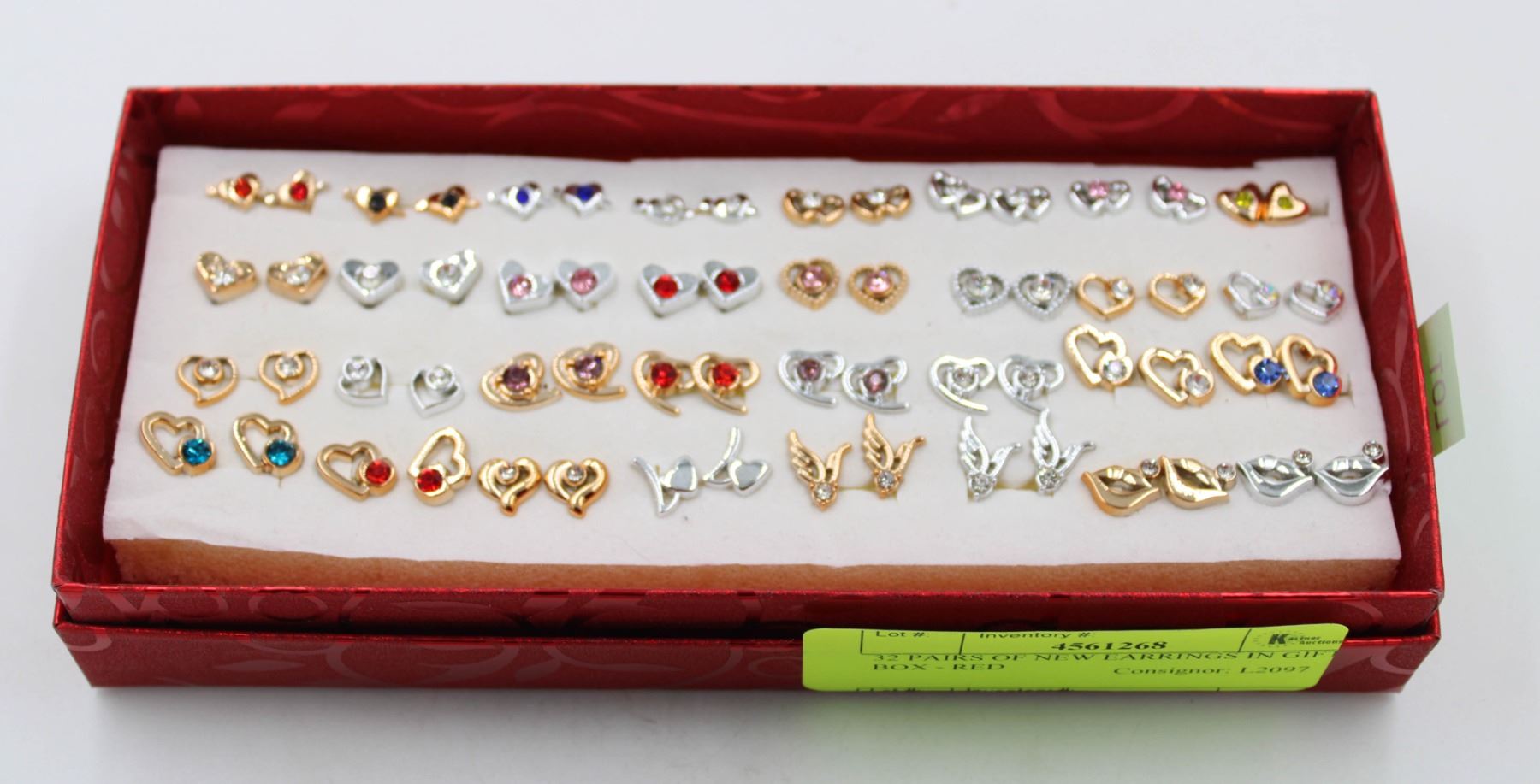 32 PAIRS OF NEW EARRINGS IN GIFT BOX - RED
