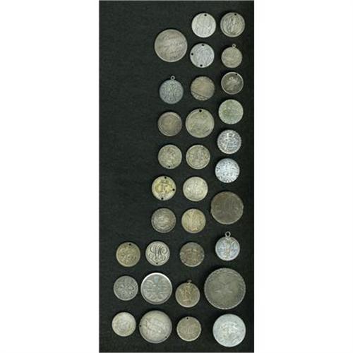 <B>32-Piece Cornucopia of Love Tokens.</B></I> A wide variety of love tokens including 23 dimes, a half dime, an 1831 Bust quarter, two other quarters, a Hawaiian quarter dollar, a O-mint Seated half, an 1858 Canadian 20 cent piece, and a couple of other foreign coins. This outstanding lot would make a great starter collection.<BR><BR><b>Shipping:</b> Coins & Currency (<a target="_blank" href="http://www.heritageauctions.com/common/shipping.php">view shipping information</a>)