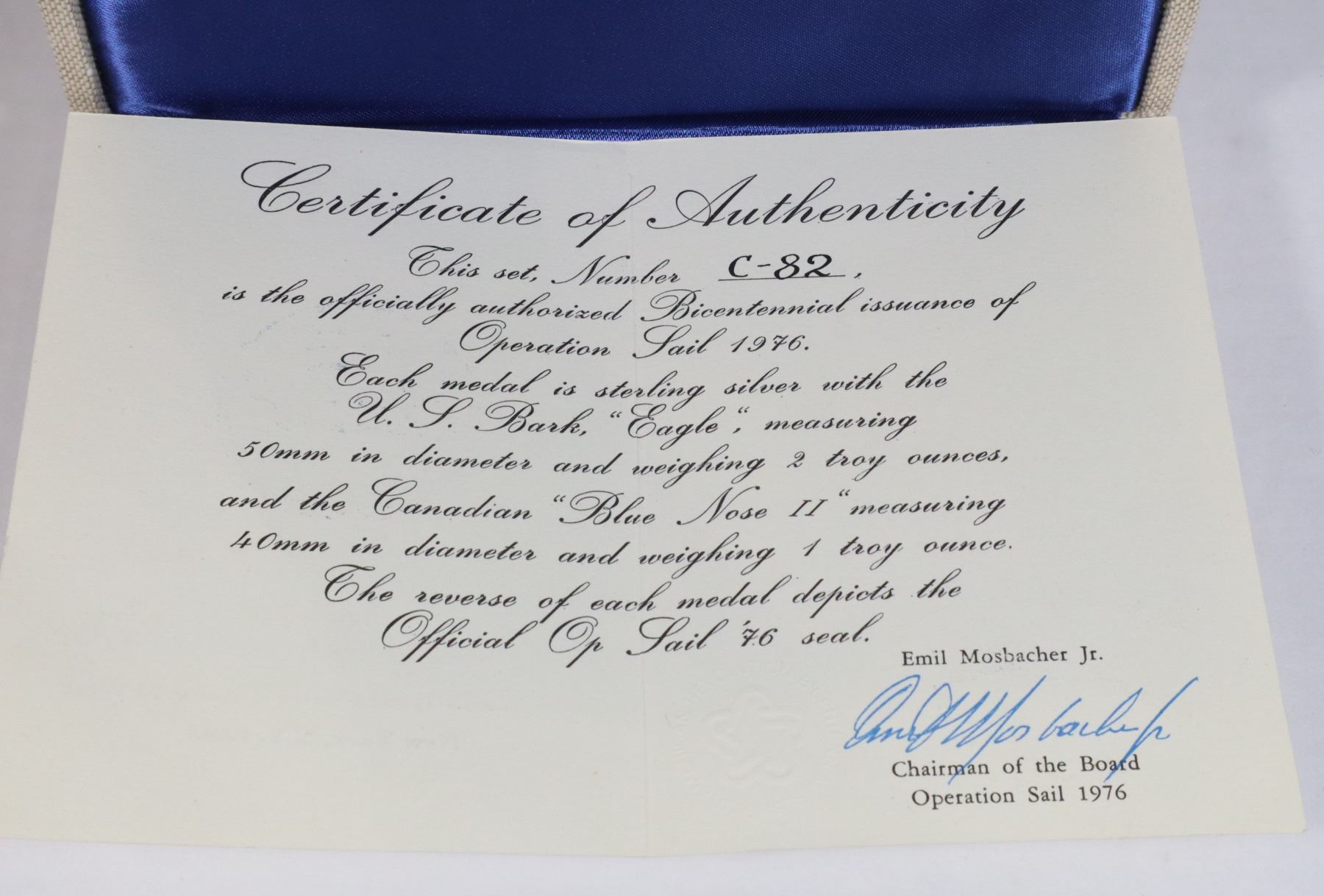 CANADA BLUE NOSE II AND EAGLE CASED W/DOCUMENT