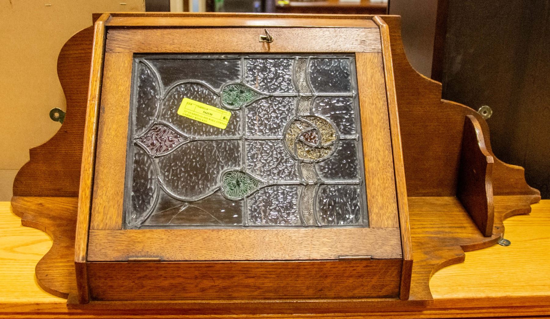 32" STAINED GLASS WALL CORNER CABINET WITH KEY