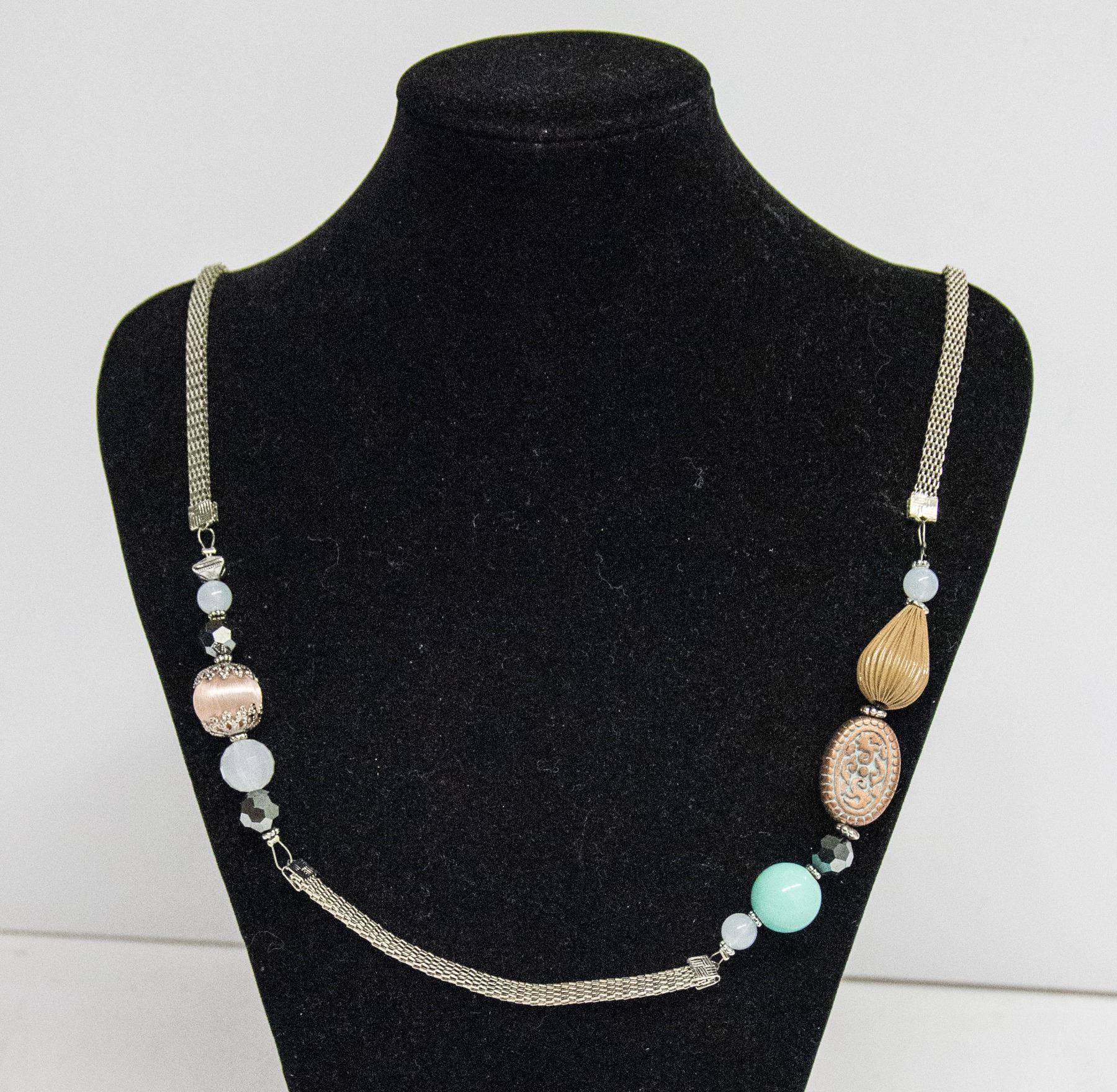 32" STAINLESS STEEL NECKLACE W/ ASSORTED STONES