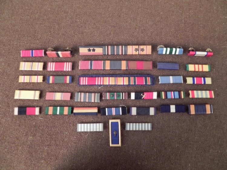 32 US VINTAGE RIBBON BARS, MOSTLY WWII