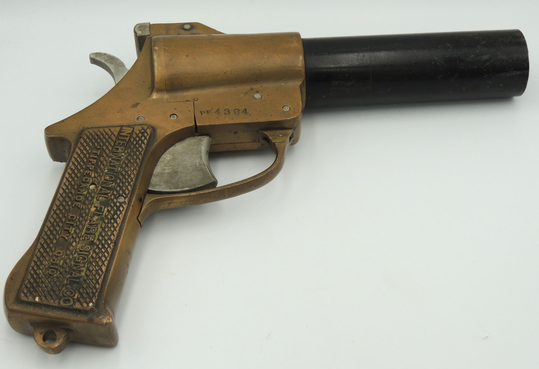 World War Two U.S. International Flare Signal Co., Flare Gun. Tippercanoe City Ohio, Serial Number PF 4384. *All Flare Guns / Flare Pistols are Legal to Own and Not Classified as a Firearm - do not require a license!
