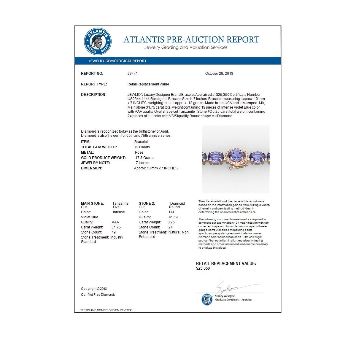 REF-328W9H - SKU:23441 ---- 32 ctw Tanzanite & Diamond Eternity Bracelet 14K Rose Gold