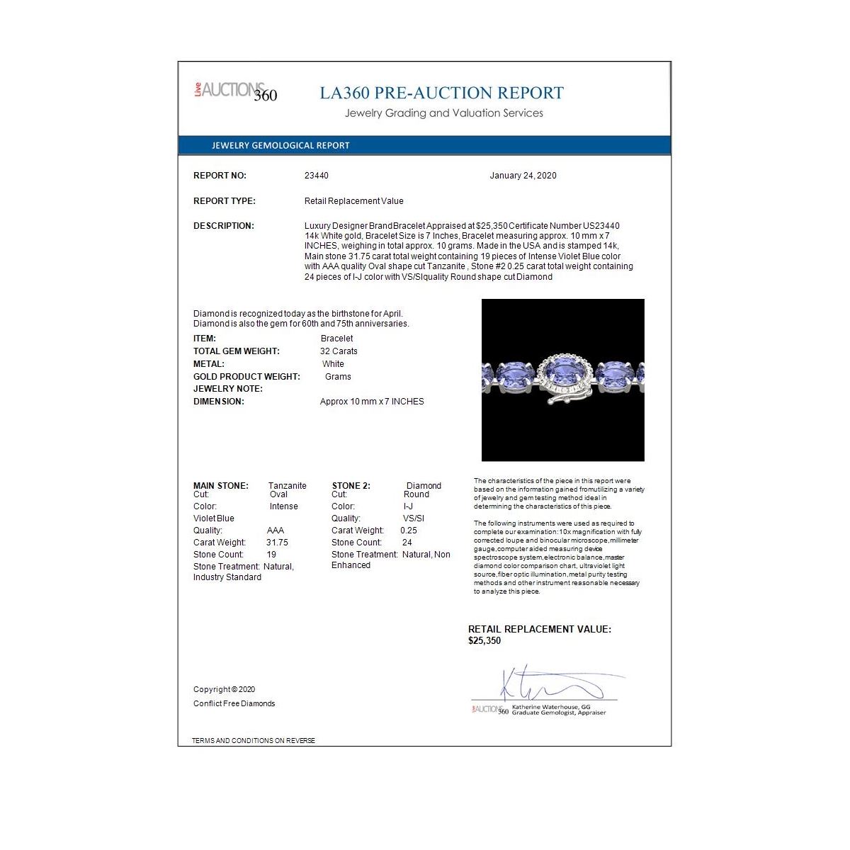 REF-328M9G - SKU: 23440 ---- 32 ctw Tanzanite & VS/SI Diamond Micro Bracelet 14k White Gold