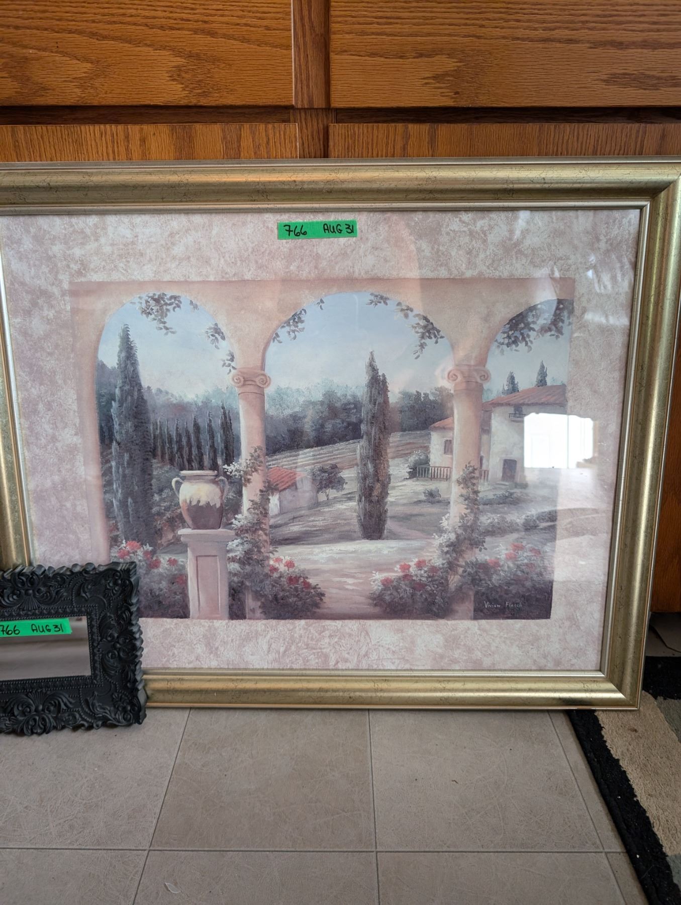 32" x 25" Tuscan Picture with 10" x 8" Black Framed Mirror