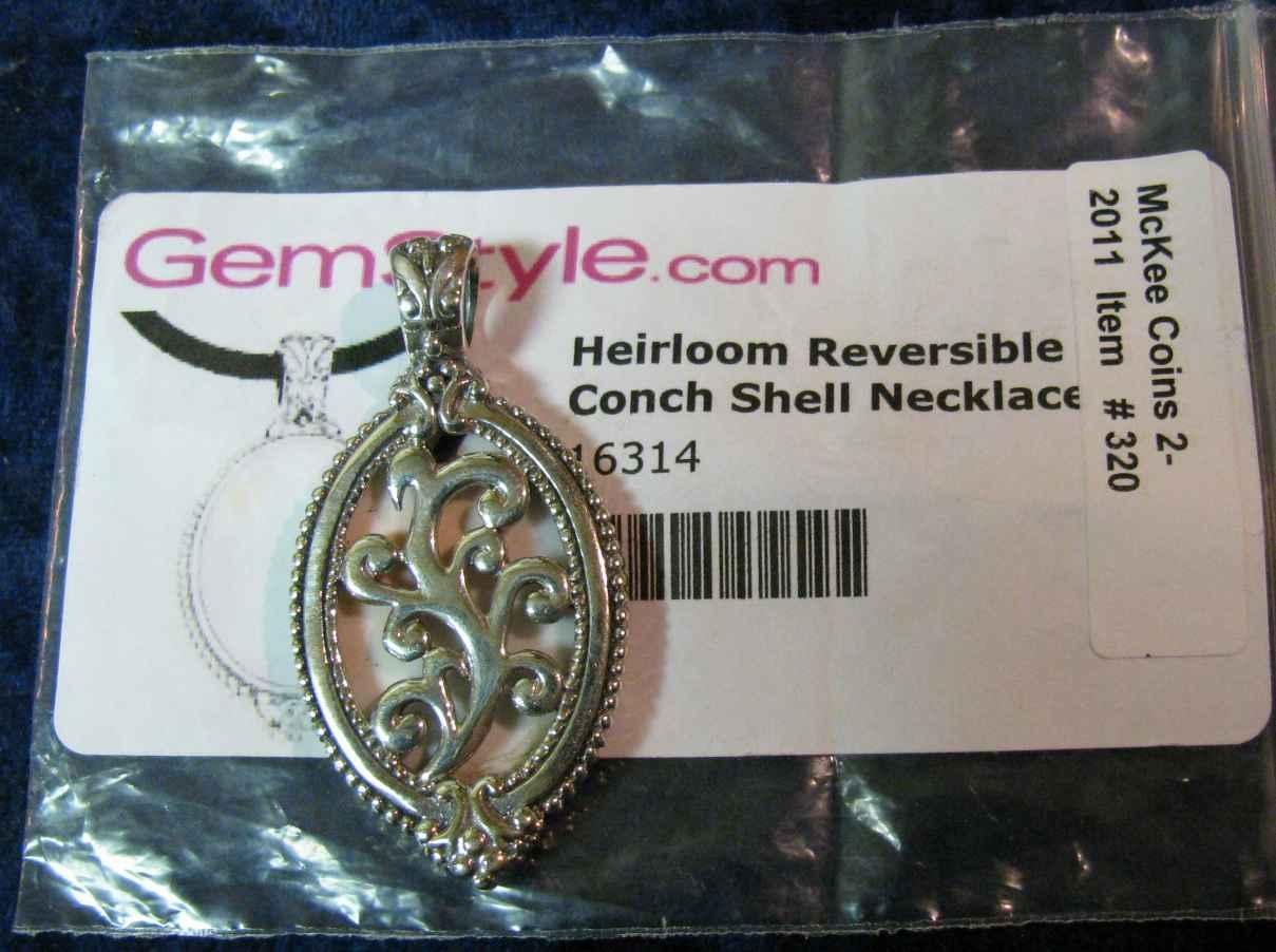 320. Gemstyle "Heirloom Reversible Conch Shell Necklace" Pendant in Silver.