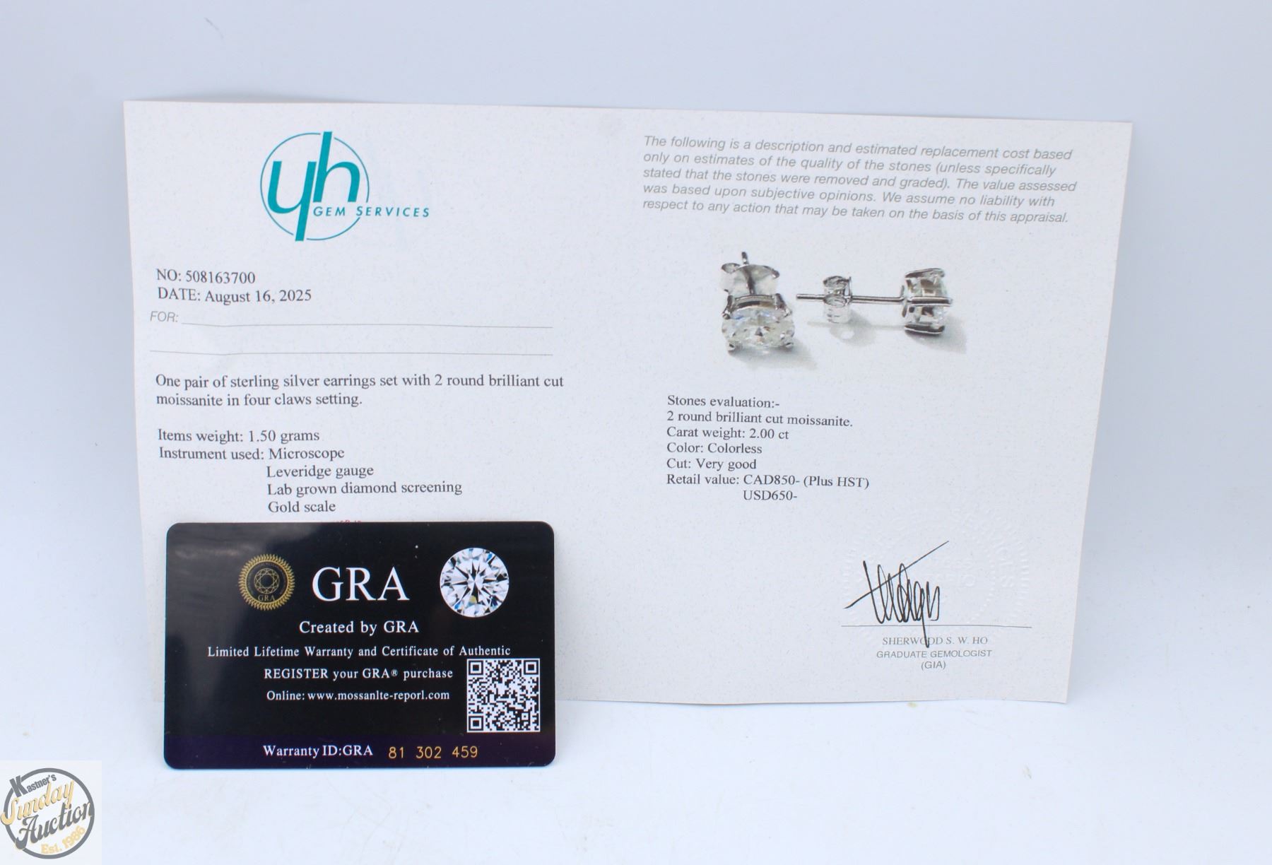 CUT MOISSANITE STONES VVS D COLOR SET IN 4 CLAW HEAD SET IN 925 SILVER EARRINGS RETAIL VALUE $850.00 **ALL ITEMS MUST BE REMOVED BY 5PM SATURDAY, SEPTEMBER 20TH 2025. ALL REMAINING ITEMS WILL BE SUBJECT TO A $6.00 PER DAY STORAGE CHARGE. ANY ITEMS REMAINING AFTER MONDAY, OCTOBER 6TH 2025 WILL BE CONSIDERED FORFEITED. NO REFUNDS WILL BE ISSUED FOR FORFEITED ITEMS. TO SCHEDULE A PICK UP APPOINTMENT CLICK HERE