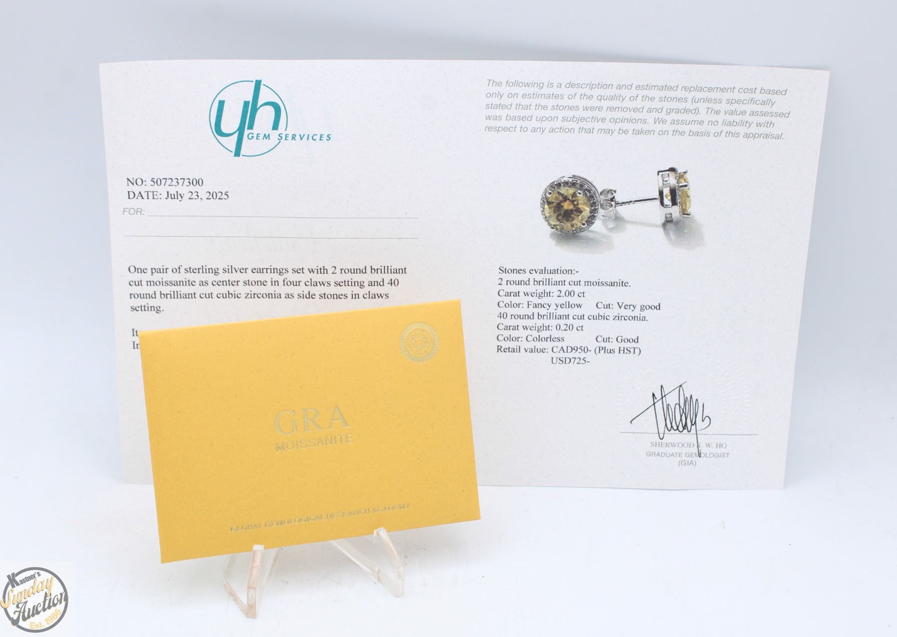 CUT MOISSANITE STONES VVS FANCY YELLOW COLOR WITH 40 ROUND BRILLIANT CUT CUBIC ZIRCONIA SET IN ROUND HALOS SET IN 925 SILVER EARRINGS RETAIL VALUE $950.00 **ALL ITEMS MUST BE REMOVED BY 5PM SATURDAY, SEPTEMBER 20TH 2025. ALL REMAINING ITEMS WILL BE SUBJECT TO A $6.00 PER DAY STORAGE CHARGE. ANY ITEMS REMAINING AFTER MONDAY, OCTOBER 6TH 2025 WILL BE CONSIDERED FORFEITED. NO REFUNDS WILL BE ISSUED FOR FORFEITED ITEMS. TO SCHEDULE A PICK UP APPOINTMENT CLICK HERE