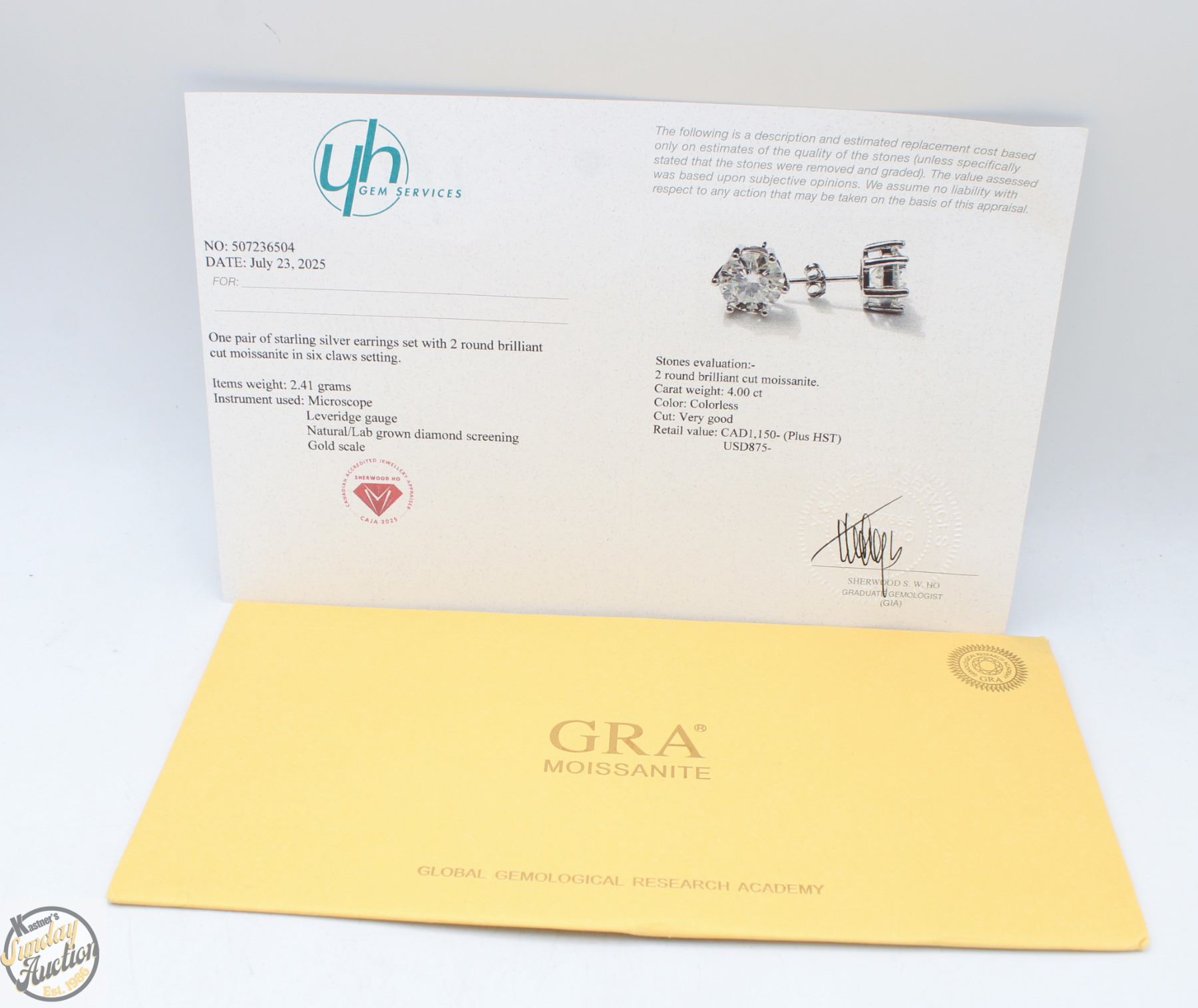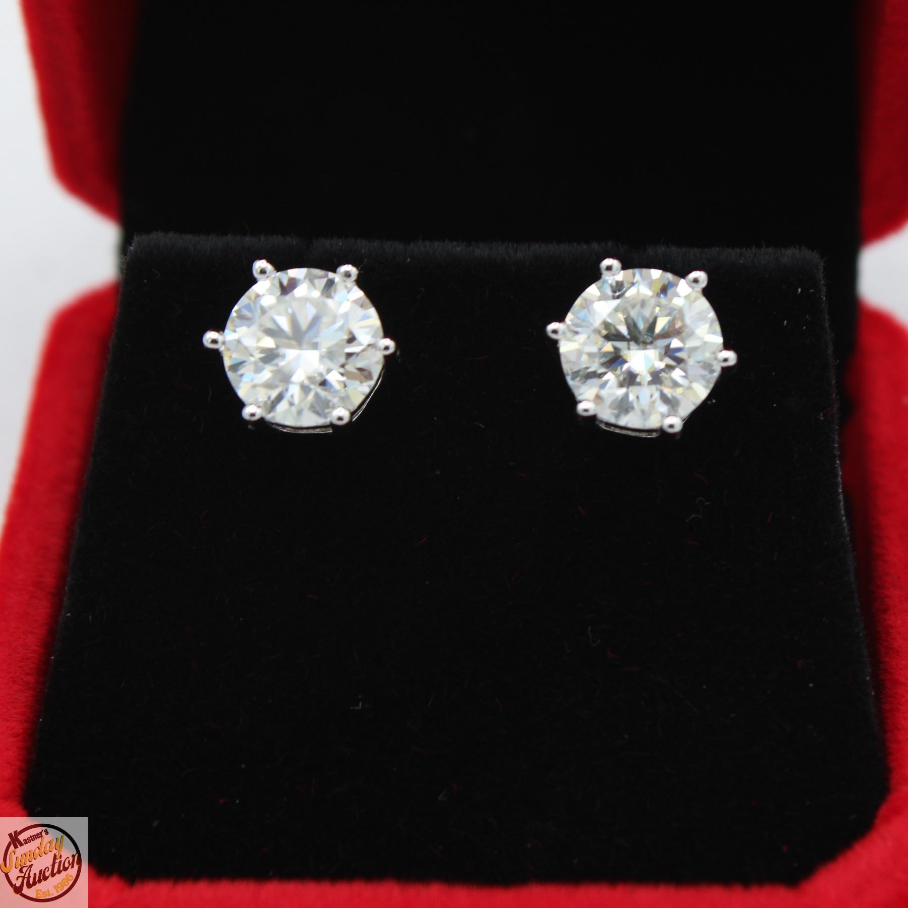 CUT MOISSANITE STONES VVS D COLOR SET IN 6 CLAW BASKET HEAD SET IN 925 SILVER EARRINGS RETAIL VALUE $1,150.00 **ALL ITEMS MUST BE REMOVED BY 5PM SATURDAY, SEPTEMBER 20TH 2025. ALL REMAINING ITEMS WILL BE SUBJECT TO A $6.00 PER DAY STORAGE CHARGE. ANY ITEMS REMAINING AFTER MONDAY, OCTOBER 6TH 2025 WILL BE CONSIDERED FORFEITED. NO REFUNDS WILL BE ISSUED FOR FORFEITED ITEMS. TO SCHEDULE A PICK UP APPOINTMENT CLICK HERE