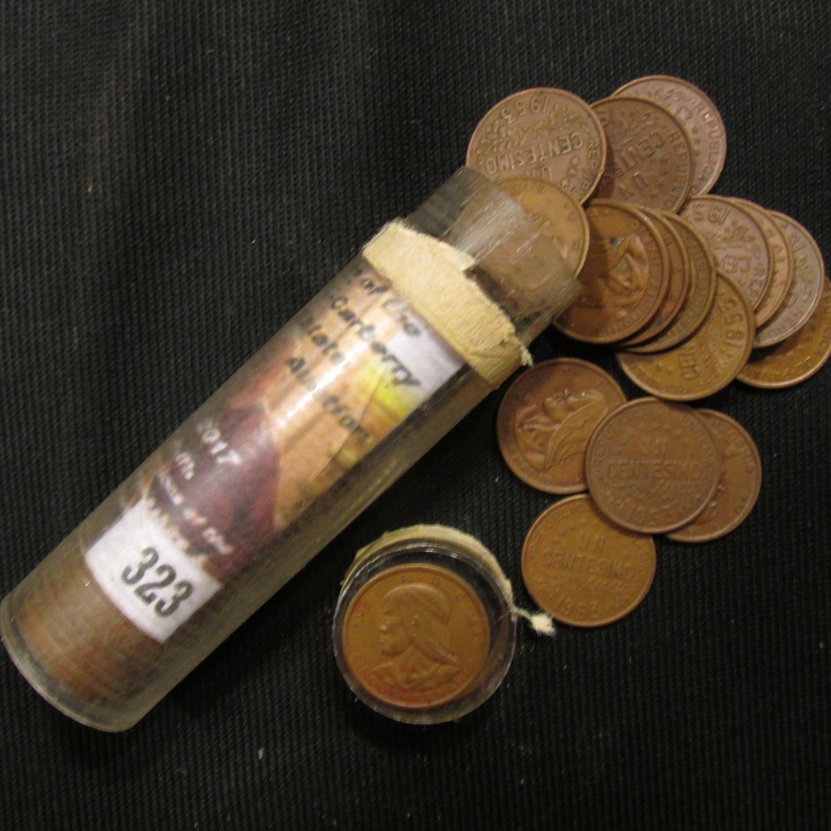 323.Roll of (50) 1953 Panama One Centesimo Coins, most are VF-EF. Scarce and unusual.