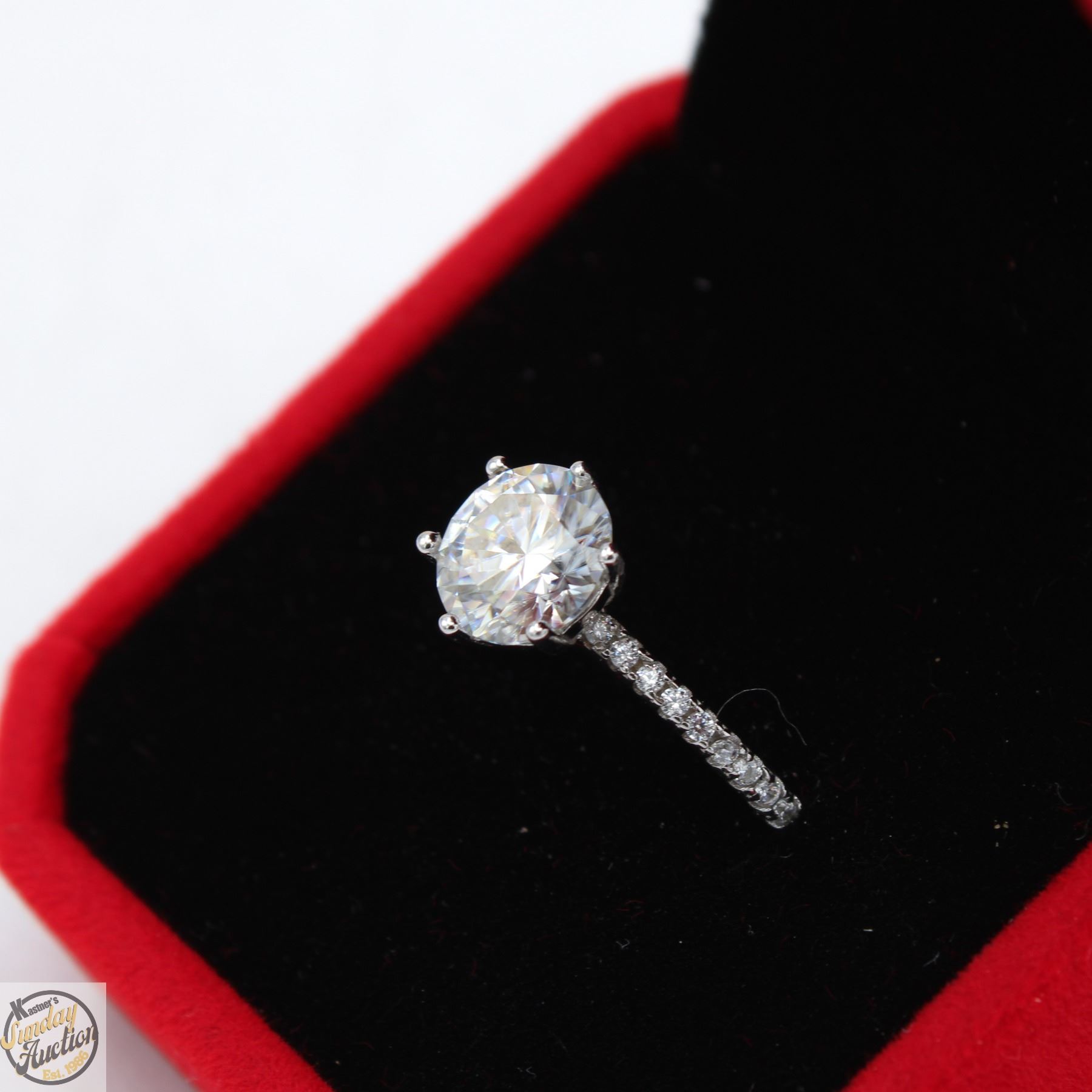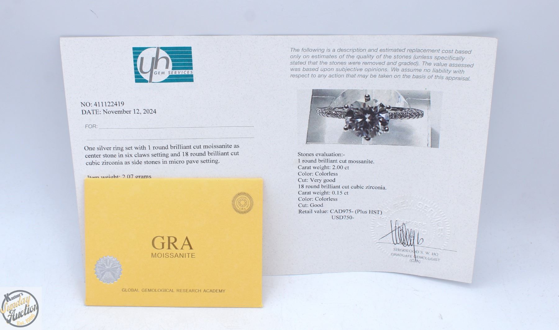 CUT MOISSANITE STONE VVS D COLOR WITH 18 ROUND BRILLIANT CUT CUBIC ZIRCONIA SET IN SHANKS SET IN 925 SILVER RING SIZE 7 RETAIL VALUE $975.00 **ALL ITEMS MUST BE REMOVED BY 5PM SATURDAY, SEPTEMBER 20TH 2025. ALL REMAINING ITEMS WILL BE SUBJECT TO A $6.00 PER DAY STORAGE CHARGE. ANY ITEMS REMAINING AFTER MONDAY, OCTOBER 6TH 2025 WILL BE CONSIDERED FORFEITED. NO REFUNDS WILL BE ISSUED FOR FORFEITED ITEMS. TO SCHEDULE A PICK UP APPOINTMENT CLICK HERE