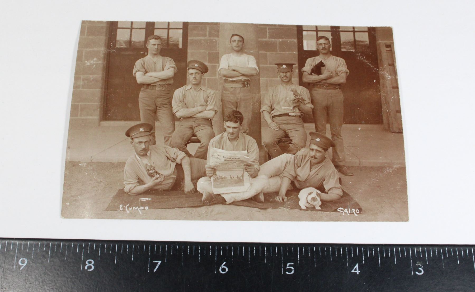 REAL PHOTO POST CARD REVERSE MARKED ARABIC WRITING ON REVERSE BRITISH MILITARY GROUP PHOTO PRE WORLD WAR ONE BRITISH EMPIRR