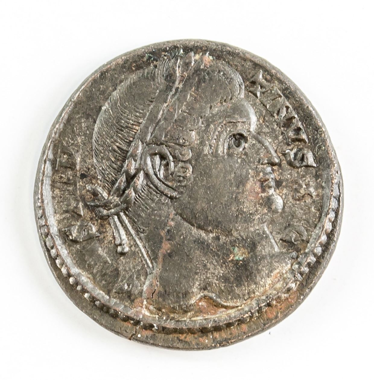 324-325 Ancient Rome Centenionalis Constantium II bronze coin, obverse engraved bust of Constanius Iettering CONSTAN-TINVS AVG, reverse lettering PROVIDEN-TIAE AVGG, D: 18.75 mm, 3.564 grams