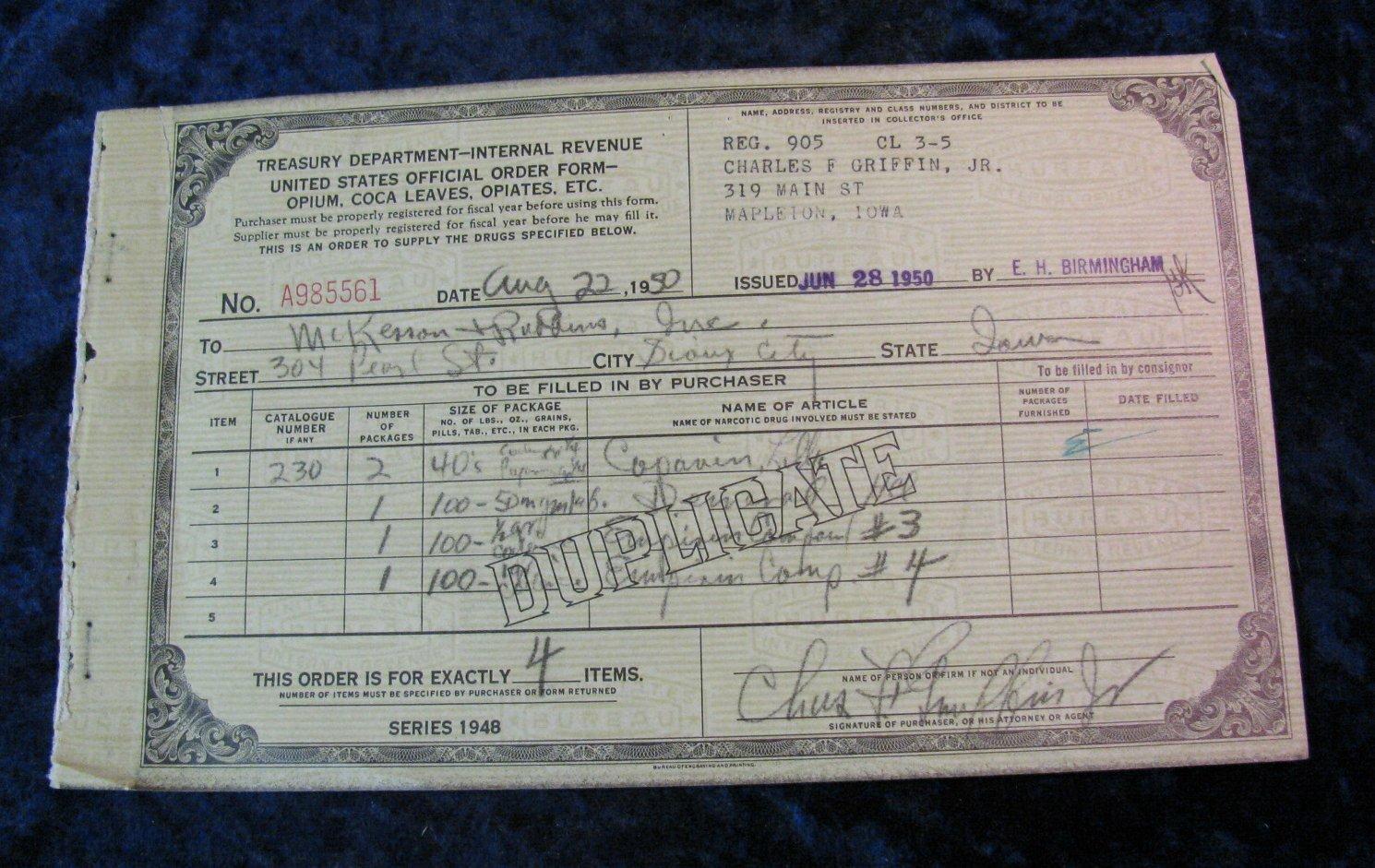 325. Series 1948 Treasury Department Scrip Official Order Form for Opium.