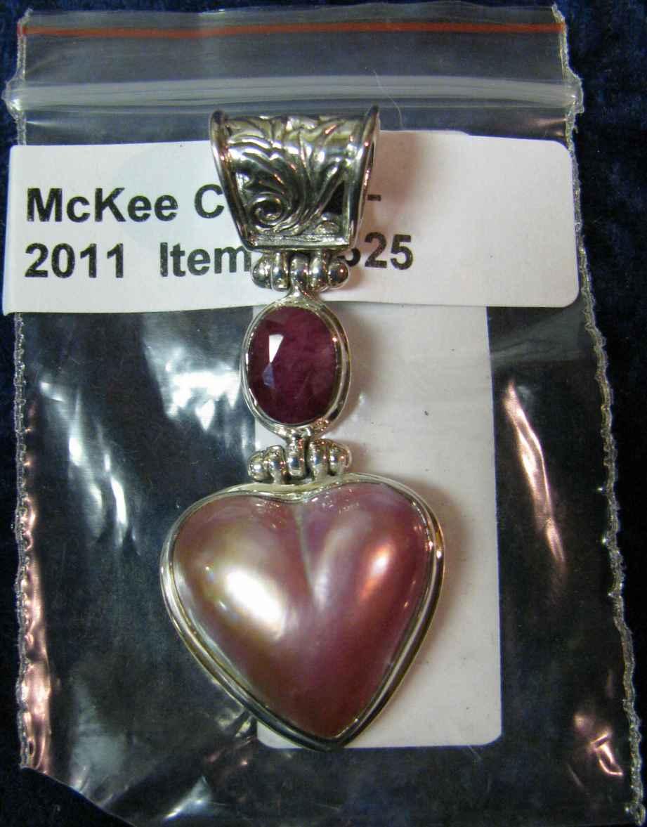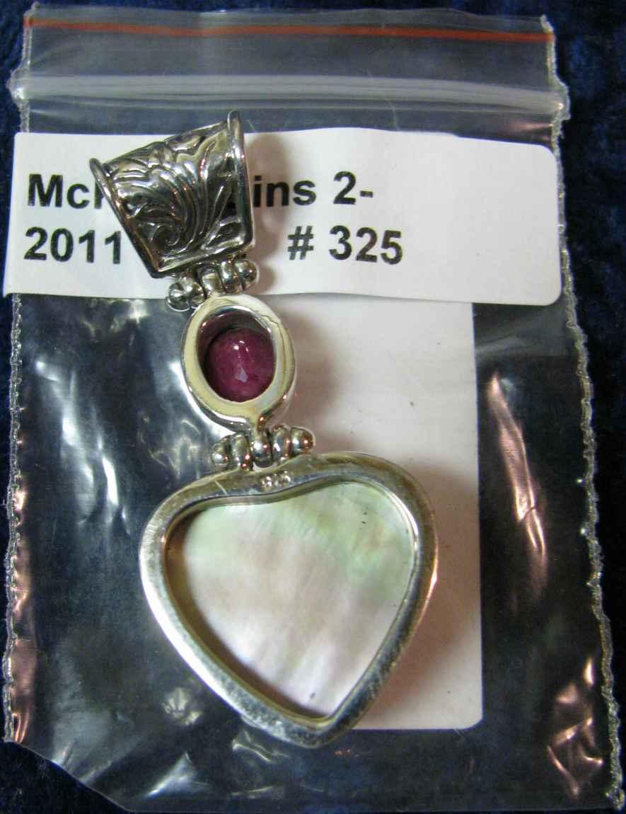 325. Silver Heart Pendant with Mother of Pearl & Garnet. New in package.