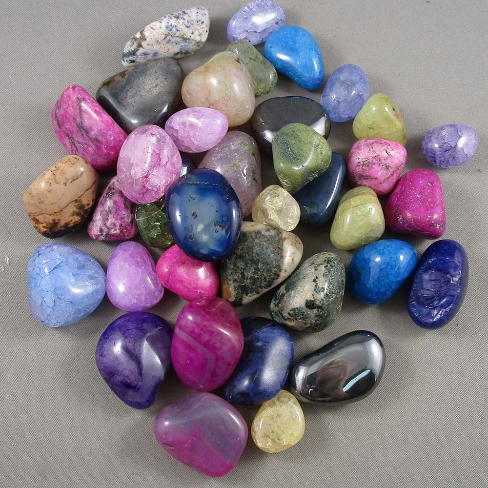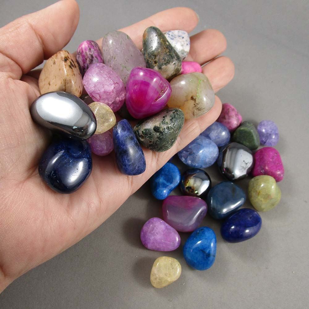 Some of the stones in this lot are Agate, Hematite, Dyed Crackle Quartz, Moss Agate and more.