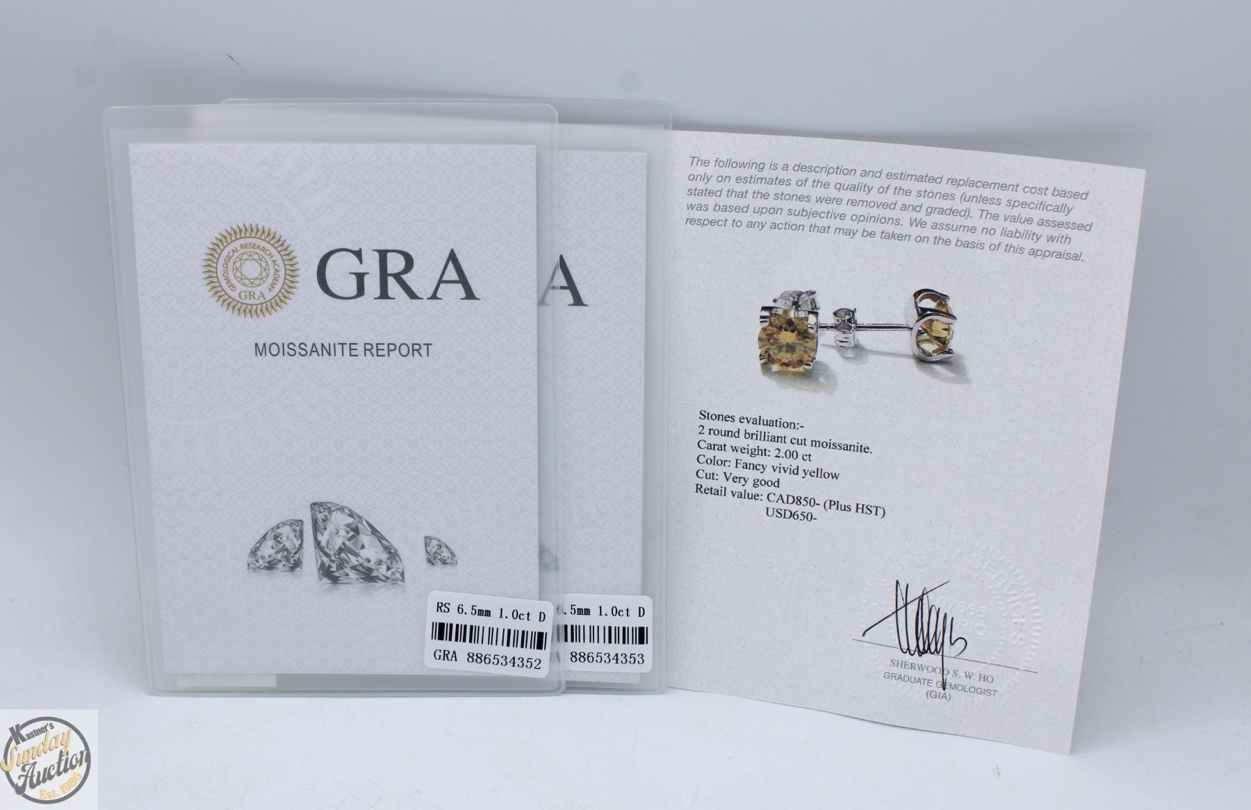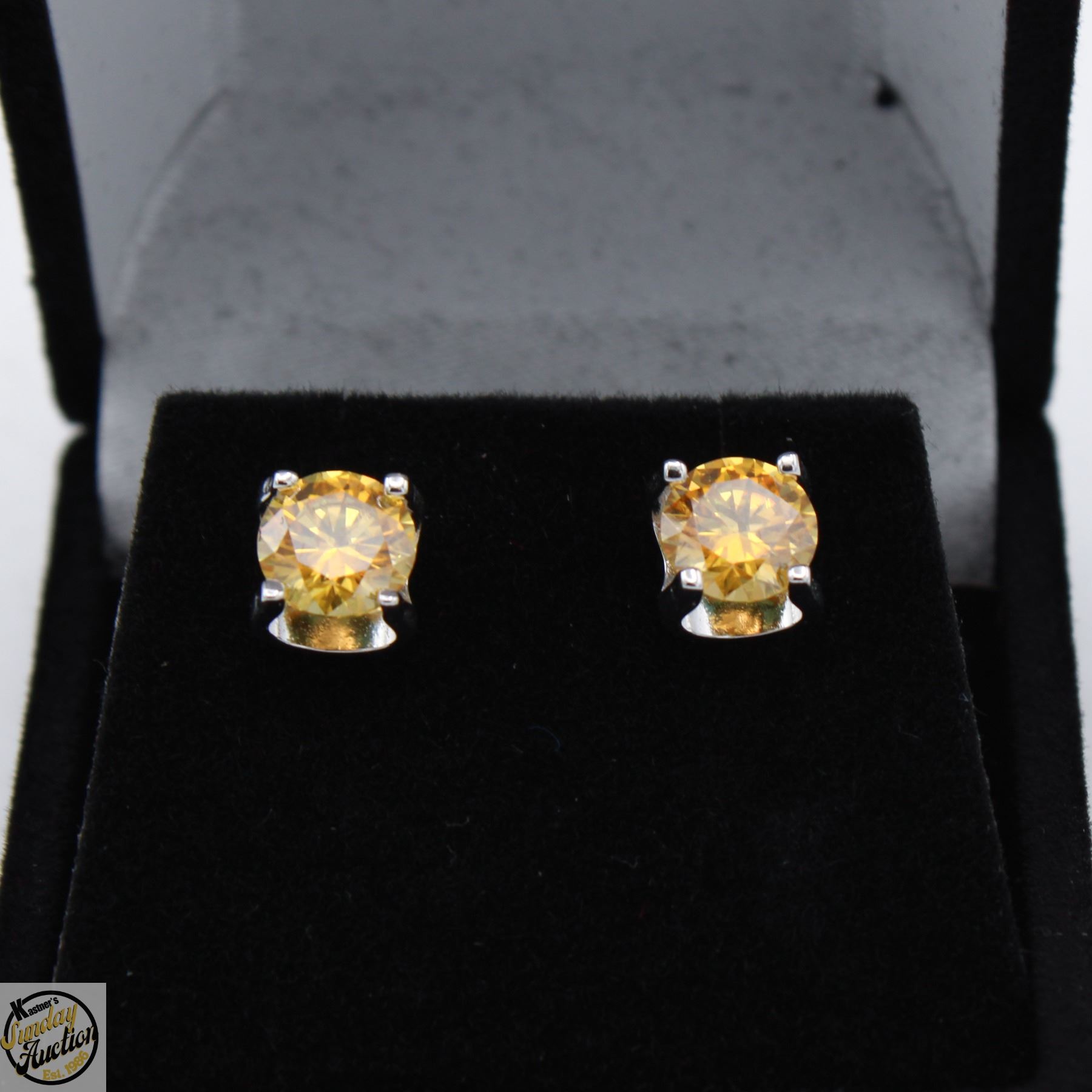 CUT MOISSANITE STONES VVS FANCY VIVID YELLOW COLOR SET IN 4 CLAW HEAD SET IN 925 SILVER EARRINGS RETAIL VALUE $850.00 **ALL ITEMS MUST BE REMOVED BY 5PM SATURDAY, SEPTEMBER 20TH 2025. ALL REMAINING ITEMS WILL BE SUBJECT TO A $6.00 PER DAY STORAGE CHARGE. ANY ITEMS REMAINING AFTER MONDAY, OCTOBER 6TH 2025 WILL BE CONSIDERED FORFEITED. NO REFUNDS WILL BE ISSUED FOR FORFEITED ITEMS. TO SCHEDULE A PICK UP APPOINTMENT CLICK HERE