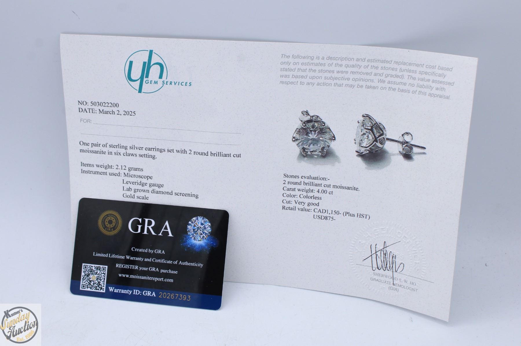 CUT MOISSANITE STONES VVS D COLOR SET IN 6 CLAW FILAGREE HEAD SET IN 925 SILVER EARRINGS RETAIL VALUE $1,150.00 **ALL ITEMS MUST BE REMOVED BY 5PM SATURDAY, SEPTEMBER 20TH 2025. ALL REMAINING ITEMS WILL BE SUBJECT TO A $6.00 PER DAY STORAGE CHARGE. ANY ITEMS REMAINING AFTER MONDAY, OCTOBER 6TH 2025 WILL BE CONSIDERED FORFEITED. NO REFUNDS WILL BE ISSUED FOR FORFEITED ITEMS. TO SCHEDULE A PICK UP APPOINTMENT CLICK HERE