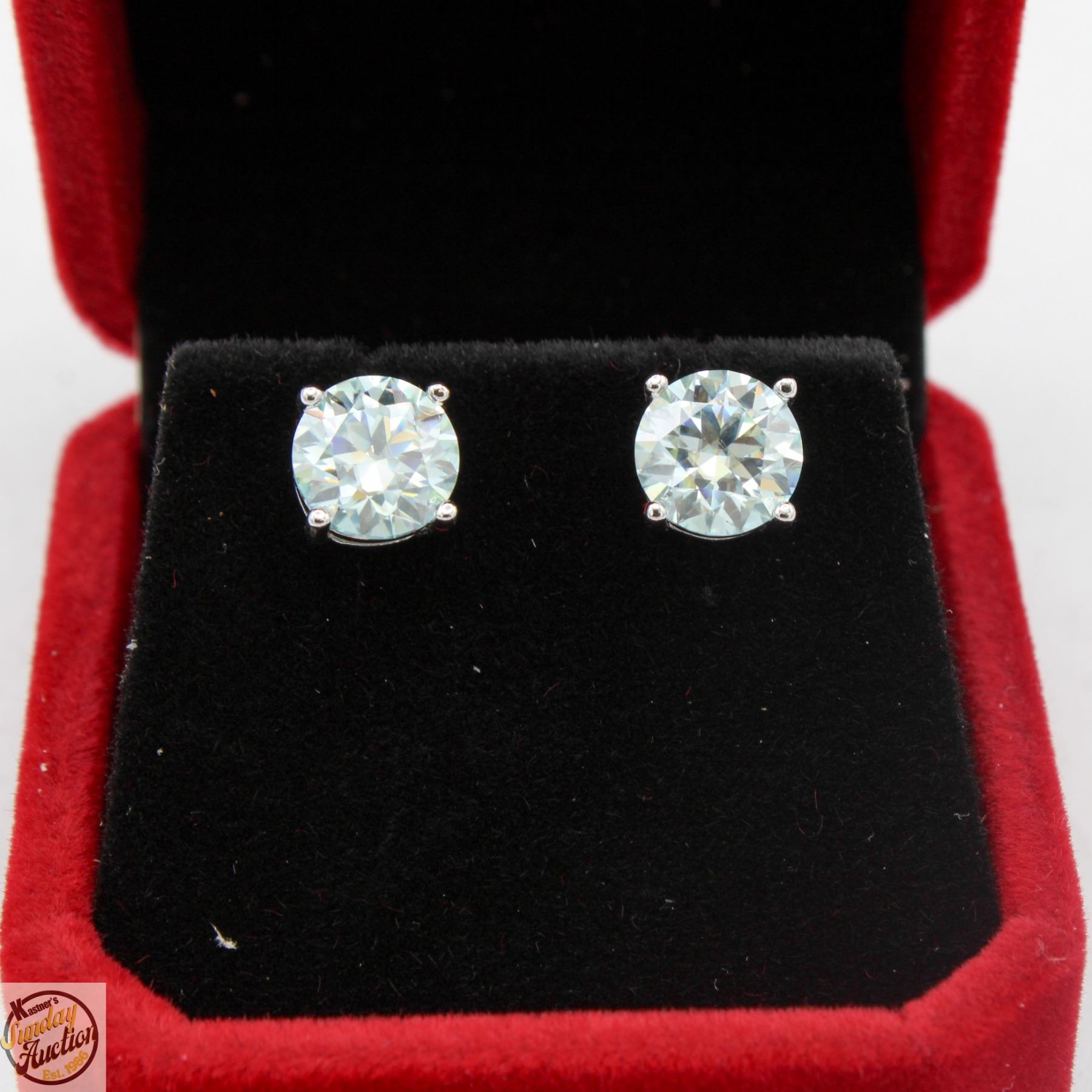 CUT MOISSANITE STONES VVS FANCY LIGHT BLUE COLOR SET IN 4 CLAW BASKET HEAD SET IN 925 SILVER EARRINGS RETAIL VALUE $1,150.00 **ALL ITEMS MUST BE REMOVED BY 5PM SATURDAY, OCTOBER 11TH 2025. ALL REMAINING ITEMS WILL BE SUBJECT TO A $6.00 PER DAY STORAGE CHARGE. ANY ITEMS REMAINING AFTER MONDAY, NOVEMBER 3RD 2025 WILL BE CONSIDERED FORFEITED. NO REFUNDS WILL BE ISSUED FOR FORFEITED ITEMS. TO SCHEDULE A PICK UP APPOINTMENT CLICK HERE