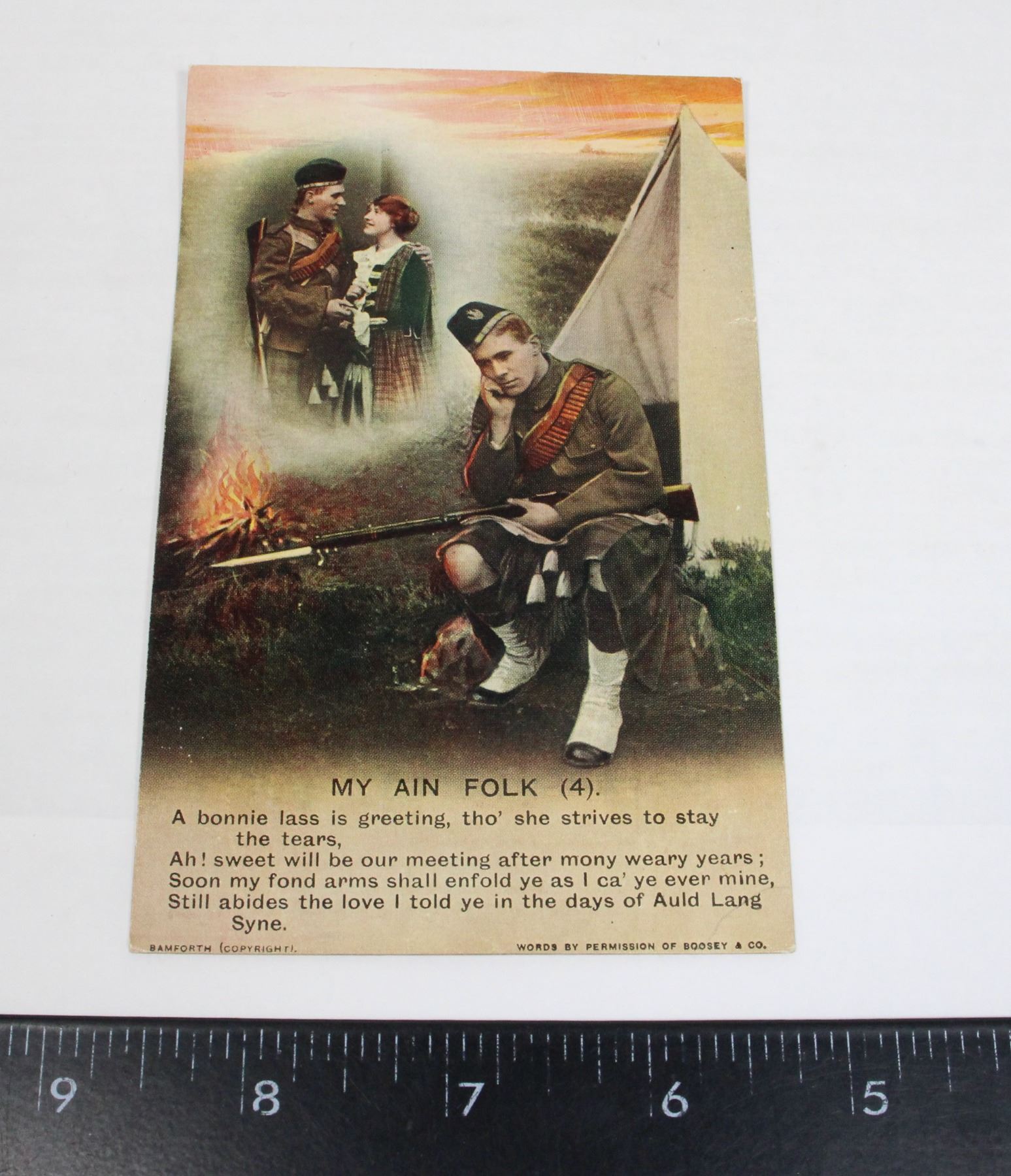 HIGHLAND SCOTTISH REGIMENT COLOURED POST CARD WORLD WAR ONE HOME FRONT ALLIED FORCES