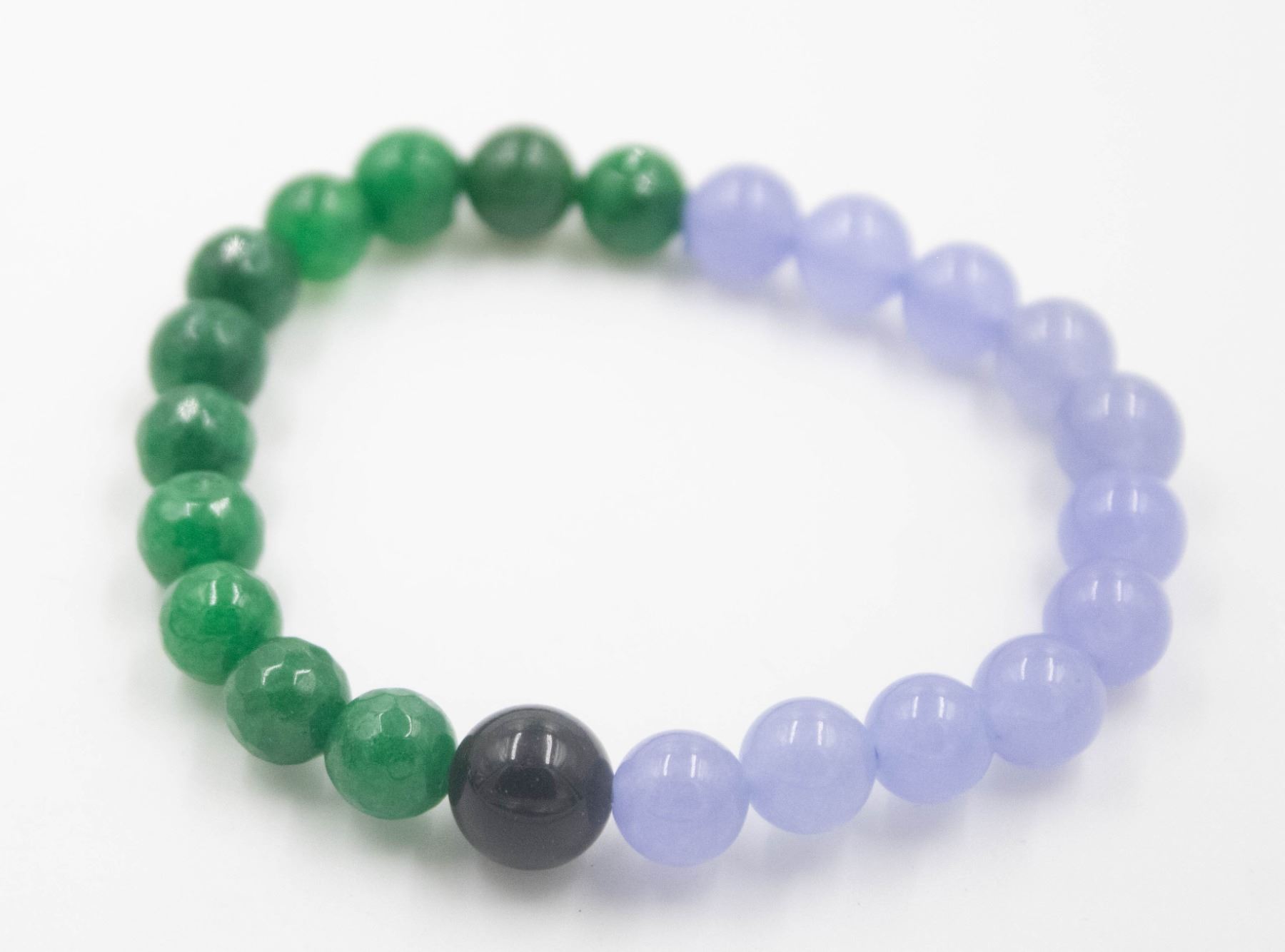 #328-PURPLE JADE ,EMERALD ,BLACK OBSIDIAN BRACELET
