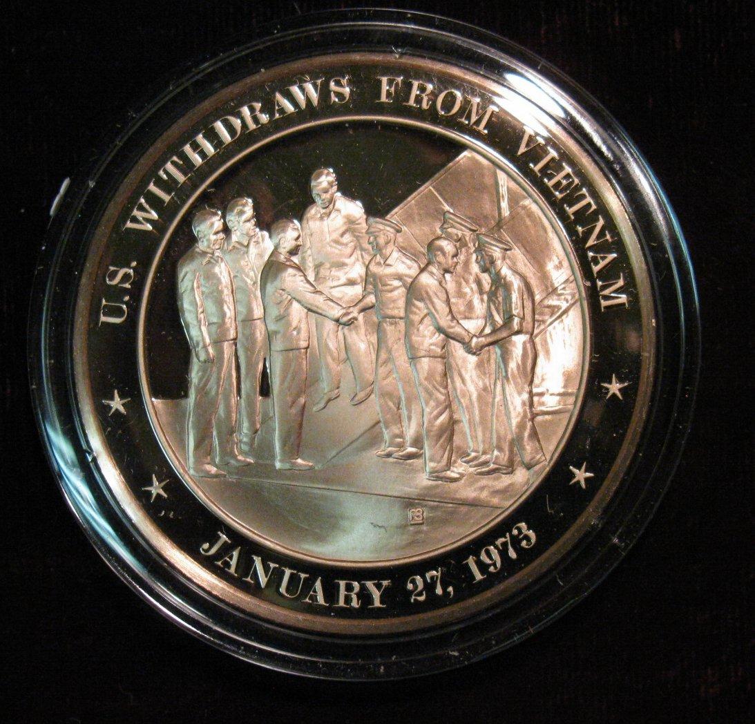 329. 1973 U.S. Withdraws from Viet Nam Proof Bronze Medal. 1 3/4" diameter. Encapsulated.
