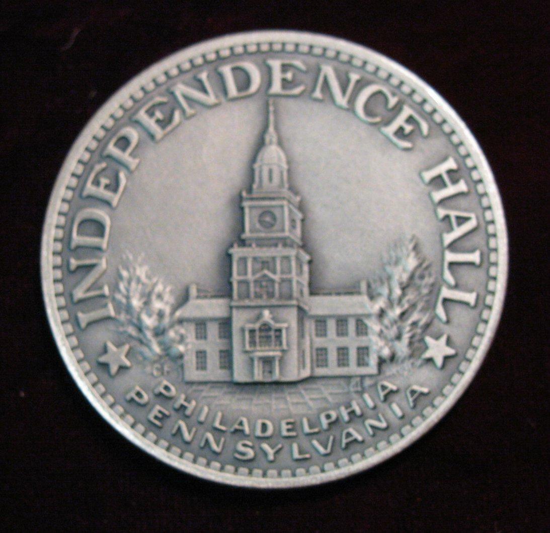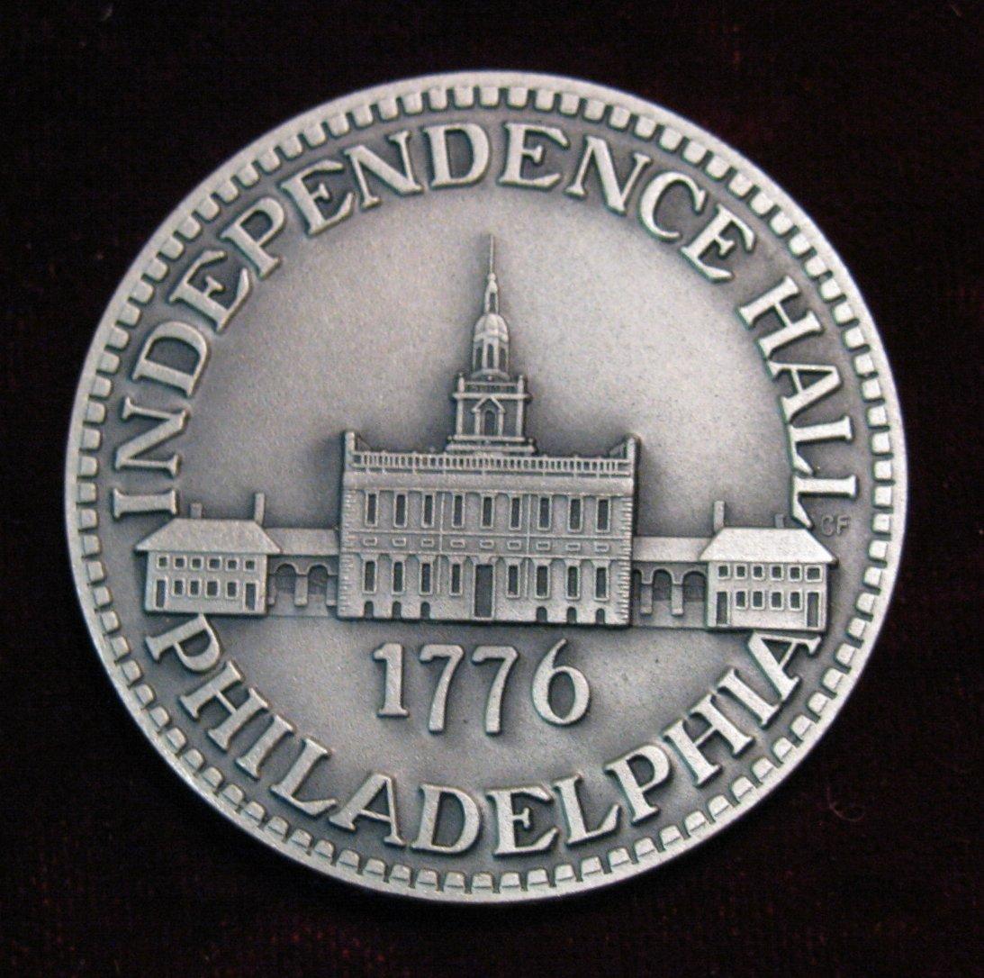 329. "Independence Hall/1776/Philadelphia", "Independence Hall/Philadelphia/Pennsylvania" Contains 1.1840 ozs. .999 Fine Silver. First Edition American Mint Association. Matte finish. 39mm.