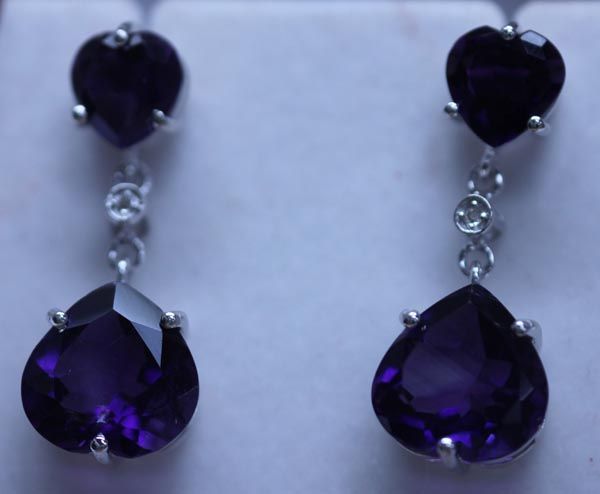 33.00 CTW AMETHYST AND DIAMOND EARRINGS .925 STERLING S **|**|** 33.00 CTW AMETHYST AND DIAMOND DANGLING EARRINGS .925 STERLING SILVER; CENTERSTONE 11.5 CTW; DIAMOND 0.03 CTW ; MSRP: $600
