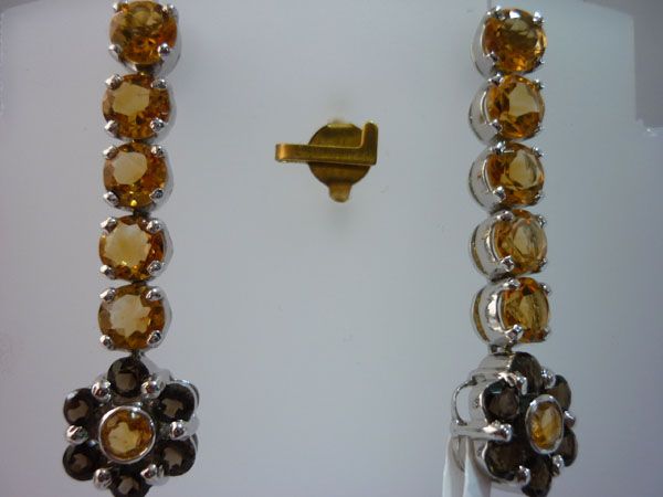 33.00 CTW SMOKEY TOPAZ AND CITRINE EARRING .925 STERLIN **|**|** 33.00 CTW SMOKEY TOPAZ AND CITRINE EARRING .925 STERLING SILVER; SMOKY TOPAZ 1.43 CTW; CITRINE 3.85 CTW ; MSRP: $450