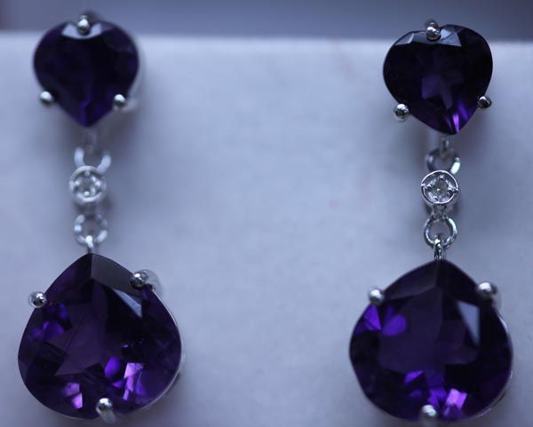 33.05 CTW AMETHYST AND DIAMOND EARRINGS .925 STERLING S **|**|** 33.05 CTW AMETHYST AND DIAMOND DANGLING EARRINGS .925 STERLING SILVER; CENTERSTONE 11.5 CTW; DIAMOND 0.03 CTW ; MSRP: $600