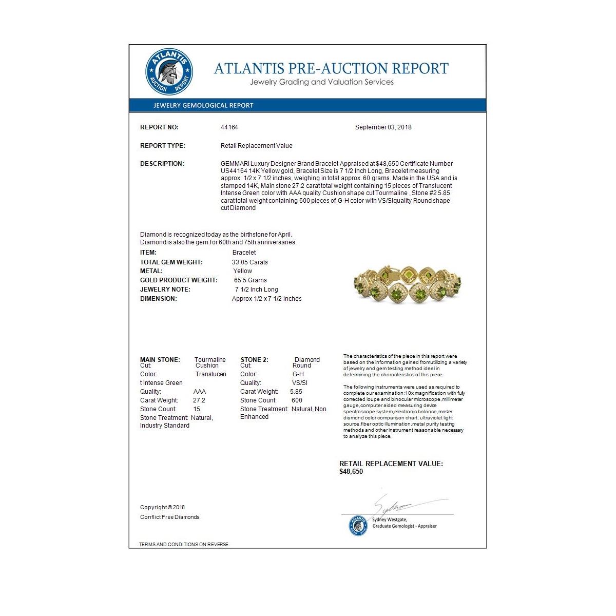 33.05 ctw Tourmaline & Diamond Bracelet 14K Yellow Gold