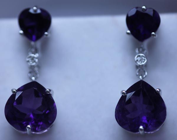 33.10 CTW AMETHYST AND DIAMOND EARRINGS .925 STERLING S **|**|** 33.10 CTW AMETHYST AND DIAMOND DANGLING EARRINGS .925 STERLING SILVER; CENTERSTONE 11.5 CTW; DIAMOND 0.03 CTW ; MSRP: $600